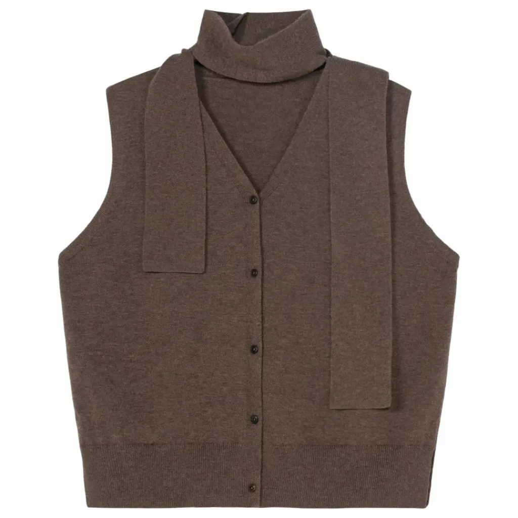 - Gilet boxy léger à la silhouette allongée et à fermeture boutonnée sur le devant. Décolleté en V, fentes latérales et écharpe amovible pour une touche de style. Parfait pour les superpositions et suffisamment polyvalent pour être porté tout au long de l’année.