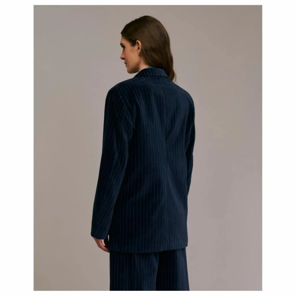 - Veste croisée un bouton avec épaulettes et poches à rabat.