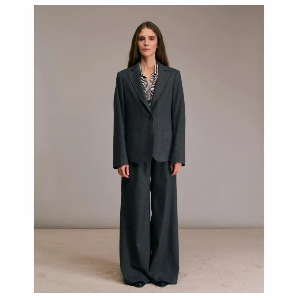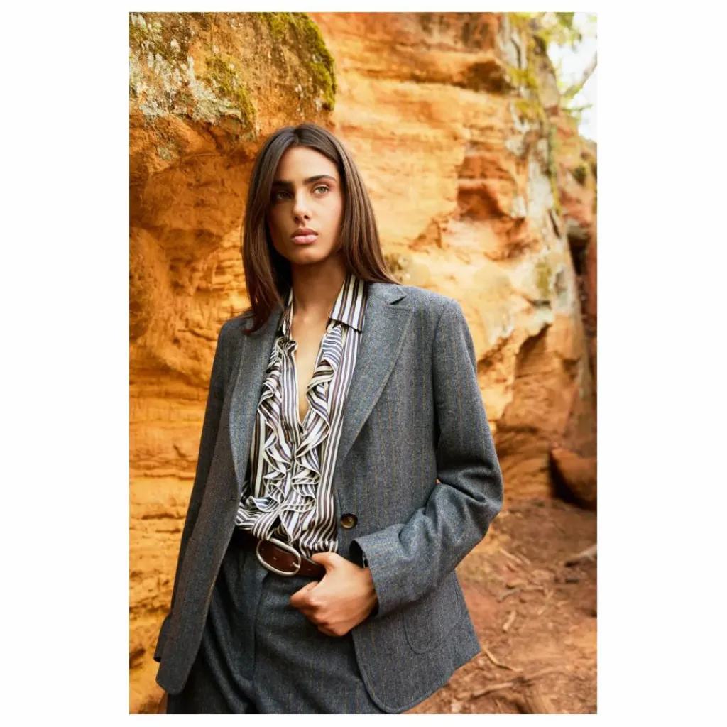 - Veste courte à poche à coins arrondis col italien fermeture à un bouton
