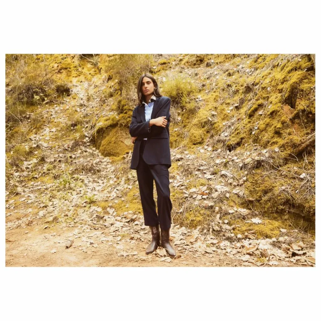 - Veste longue col tailleur cran à l’anglaise fermeture un bouton. Poches plaquées