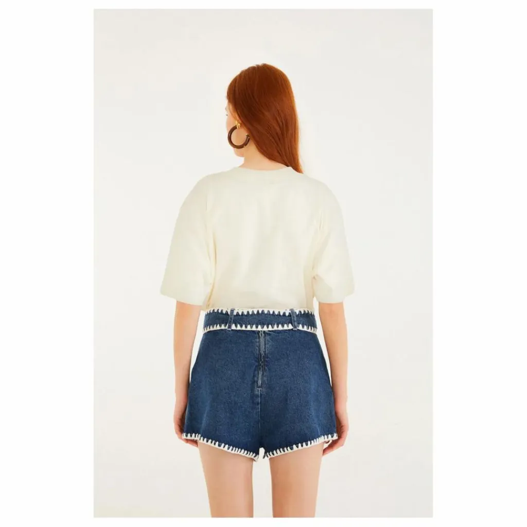 - Le short ceinturé à broderie en crochet en denim de FARM Rio vous séduira sans effort. Confectionné en denim souple, ce short est orné d’une délicate broderie au crochet qui tisse une histoire artistique ludique le long de l’ourlet. La taille ceinturée s’ajuste délicatement, créant une silhouette flatteuse qui oscille entre décontraction et raffinement. Débordant de chaleur et de caractère, ce short vous invite à profiter des journées ensoleillées avec une touche d’élégance artisanale.