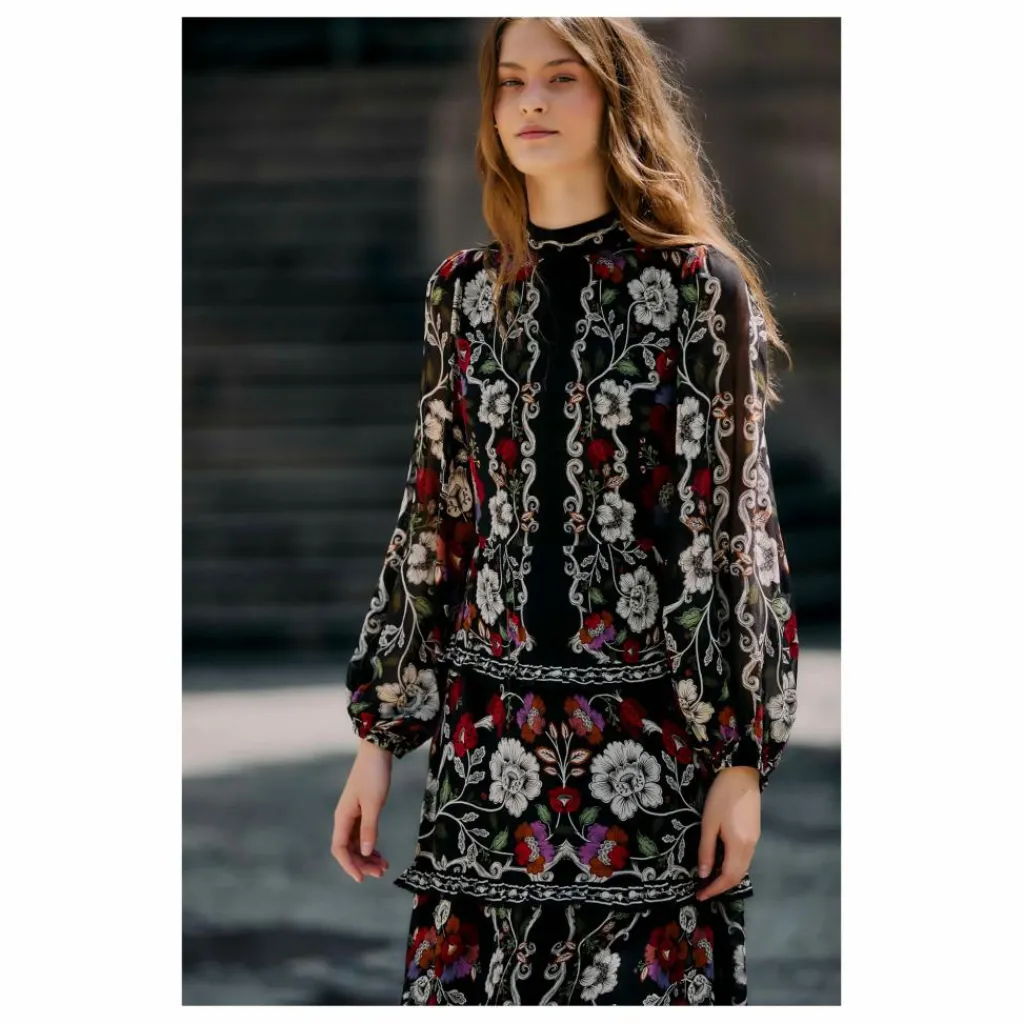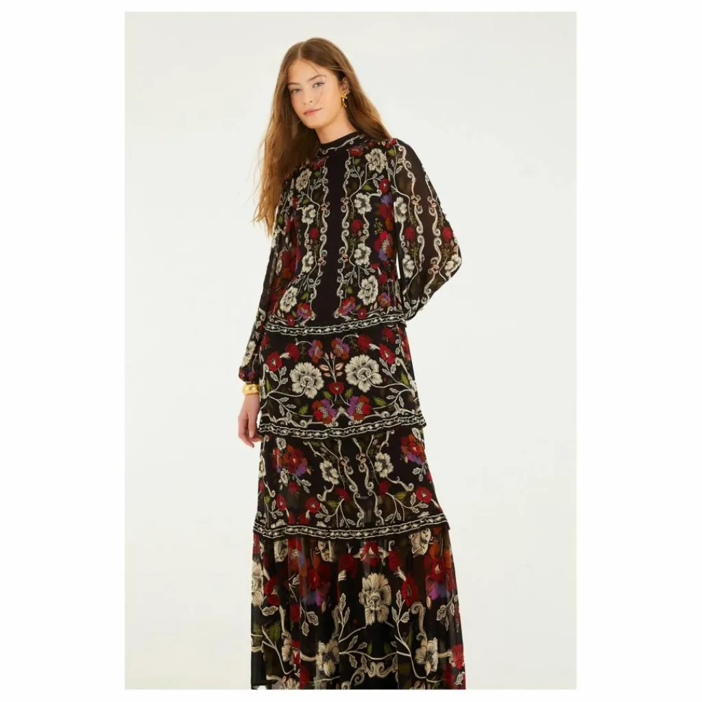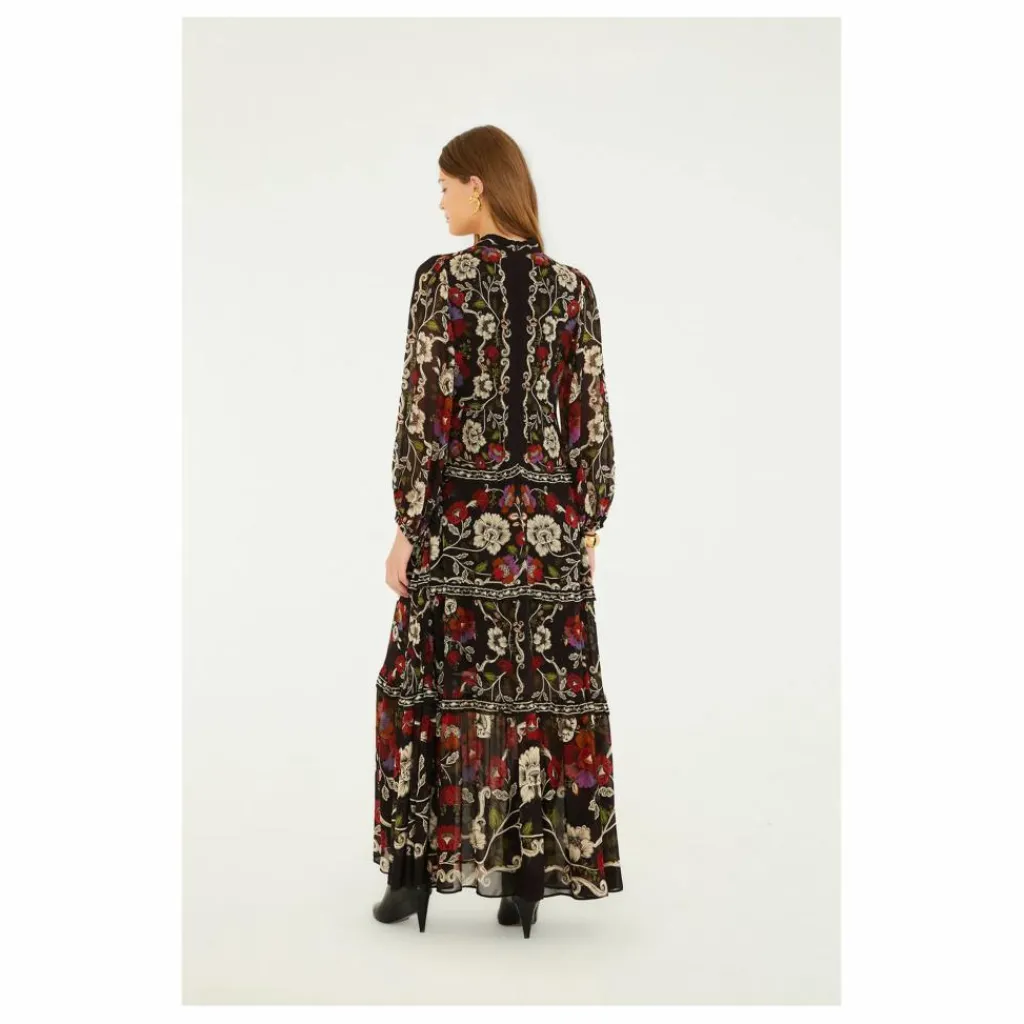 - ROBE LONGUE NOIRE ROCOCO FLOWERS