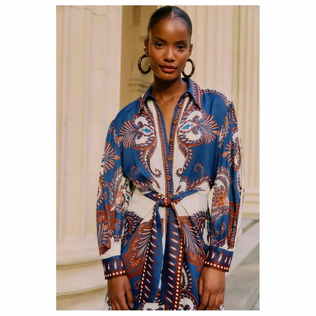- Enveloppée de motifs arabesques bleus vibrants, cette robe midi de FARM Rio coule sans effort grâce à son tissu doux Lenzing™ Ecovero™ viscose. L’encolure à col ajoute une touche de charme classique, tandis que la silhouette ludique danse à chaque pas. Légère et respirante, cette robe mêle artisanat responsable et élégance joyeuse, invitant chaleur et aisance dans votre garde-robe avec une touche brésilienne distincte.