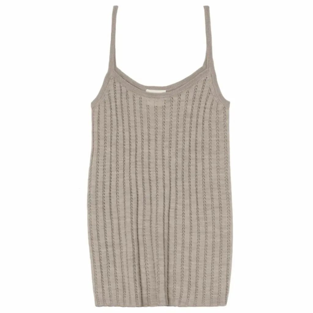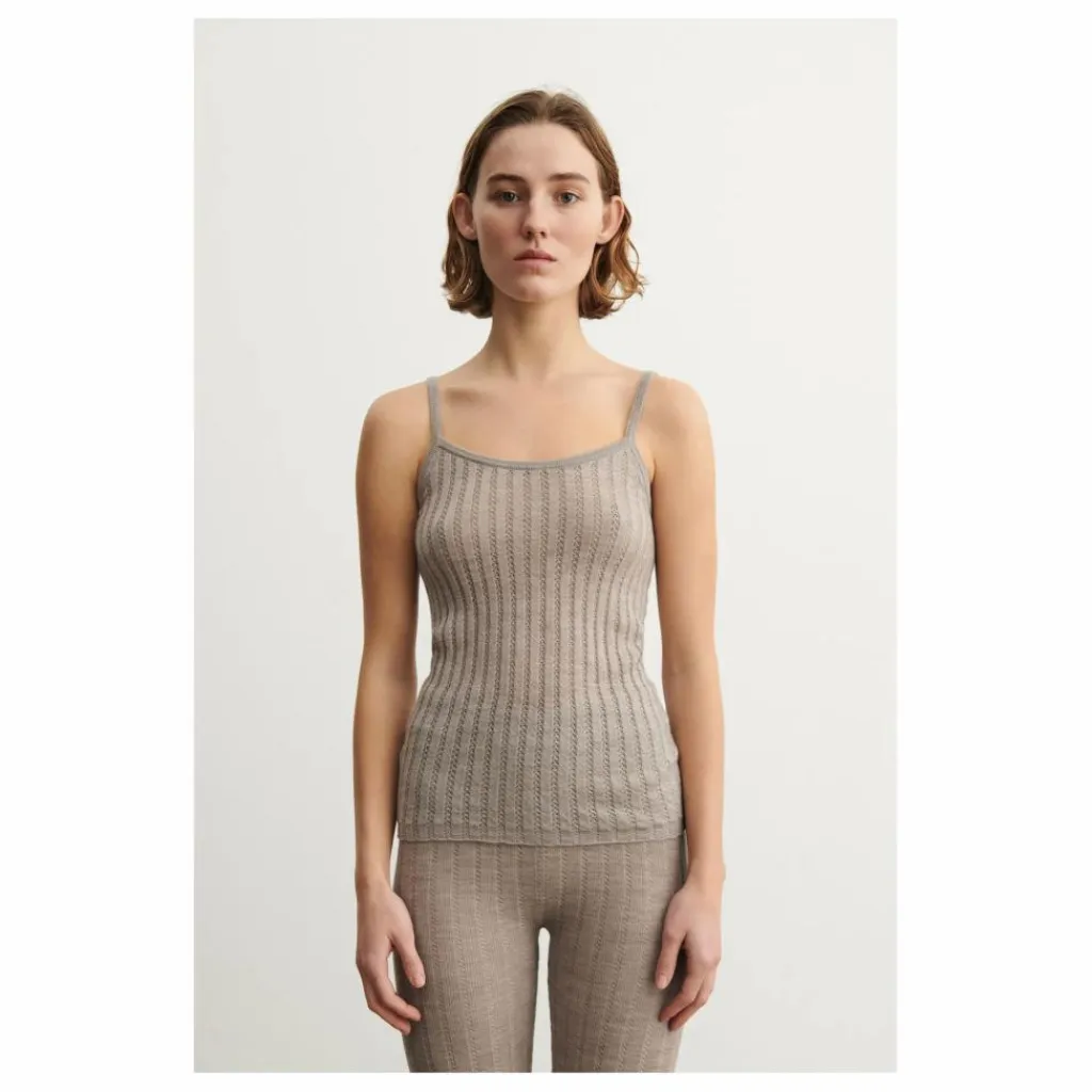 - Tricoté dans une laine mérinos extra-fine, ce caraco est doté d’étroites bretelles tubulaires. Ce haut léger a une coupe ajustée et est tricoté avec un motif de pointelle décorative et un ourlet côtelé. Notre laine mérinos est certifiée BLUESIGN® et RWS, elle est exempte de produits chimiques nocifs et provient de moutons non mulets.