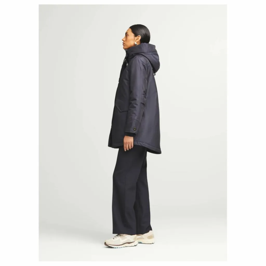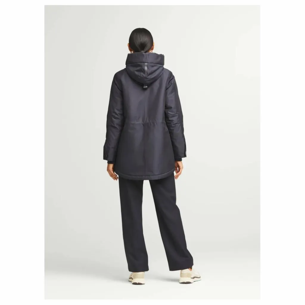 La veste féminine AMBER, avec sa silhouette légère en forme de A, est fabriquée en sergé élégant et résistant aux intempéries. C’est une veste intemporelle à porter tous les jours.