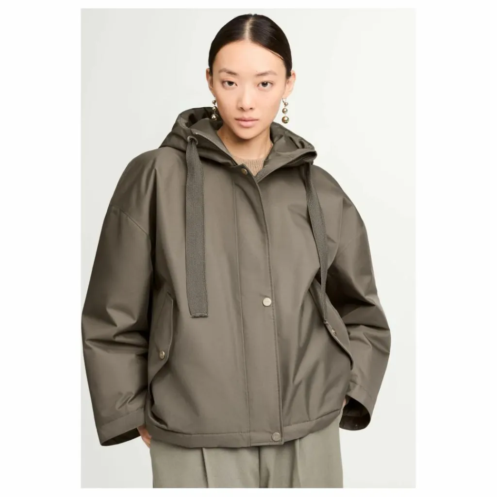 - La veste ROSIE, qui descend jusqu’aux hanches, joue avec la forme et la fonctionnalité, tout en privilégiant la polyvalence. Grâce à son ourlet ajustable, elle se porte aussi bien en coupe carrée épurée qu’avec un drapé féminin. Deux looks, une seule pièce, pour une liberté de style maximale. Son élégant twill technique chatoyant et doux au toucher confère à ROSIE une élégance subtile qui impressionne en toutes circonstances. Qu’elle soit portée avec un jean pour un look décontracté ou avec un pantalon large pour une allure sophistiquée : ROSIE est la pièce polyvalente idéale pour un look stylé, du matin au soir. Une veste qui enrichit votre garde-robe sans effort : moderne, polyvalente et naturellement chic.
