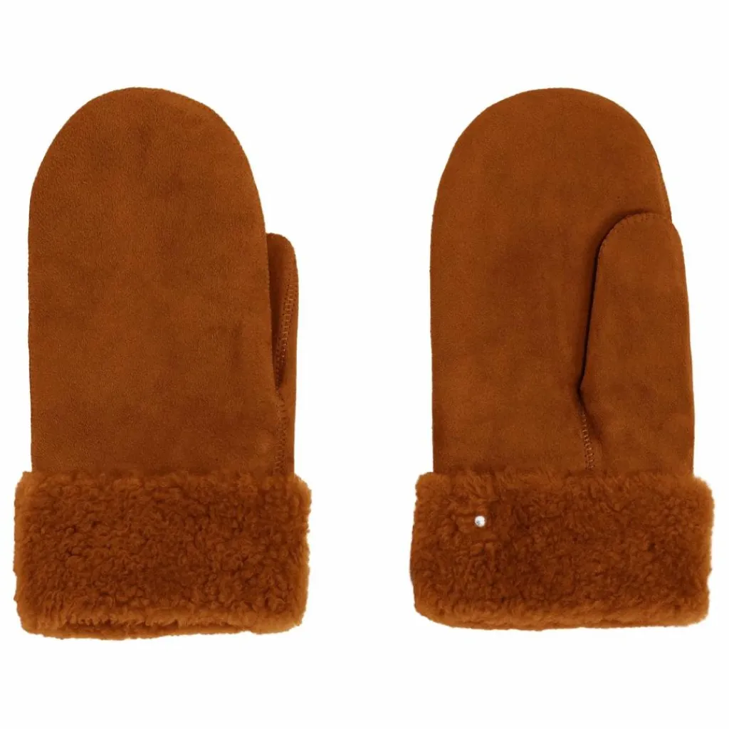 - moufles en peau lainée, poignet laine, ajustement par bouton pression en métal, couture et finition ton sur ton
