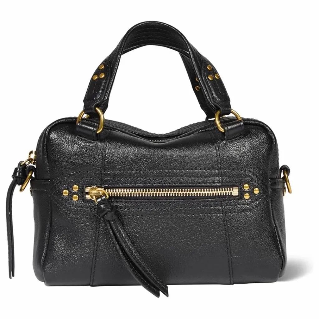 - Sac bowling porté croisé ou à la main. Bandoulière amovible, fermeture zippée avec des liens en cuir.