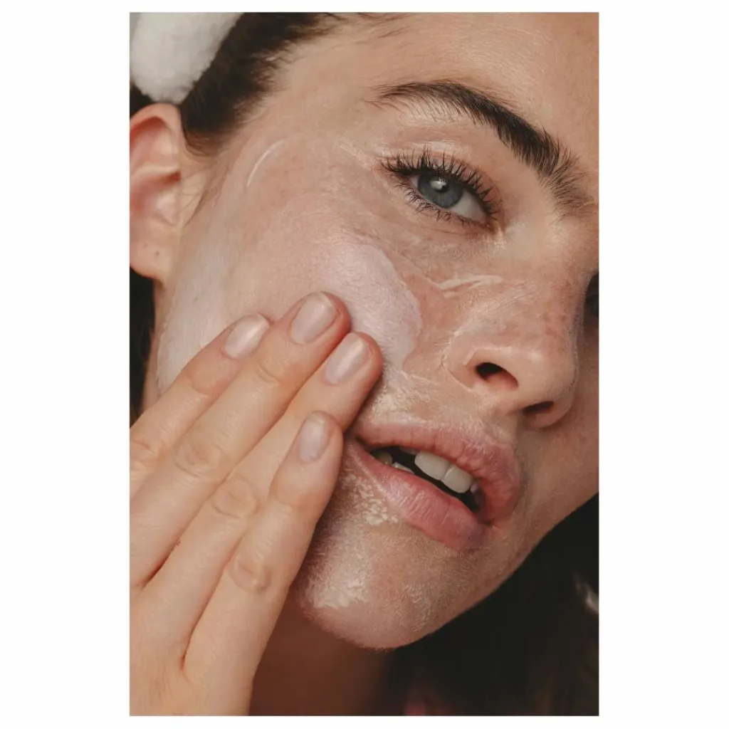 - Appliquez généreusement sur peau humide, puis émulsionnez à l’eau jusqu’à transformation de la texture en un voile lacté. Rincez abondamment à l’eau claire. A utiliser matin et/ou soir.