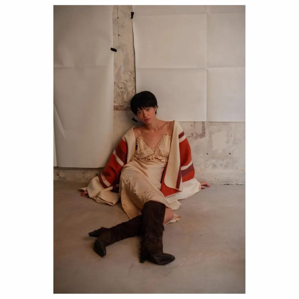 Parmi les pièces de la collection 2025 de La Méricaine, la cape Hopis tissée en France est une évocation des grands espaces américains tout en vous permettant d’adopter une silhouette urbaine chic tout en restant décontractée.