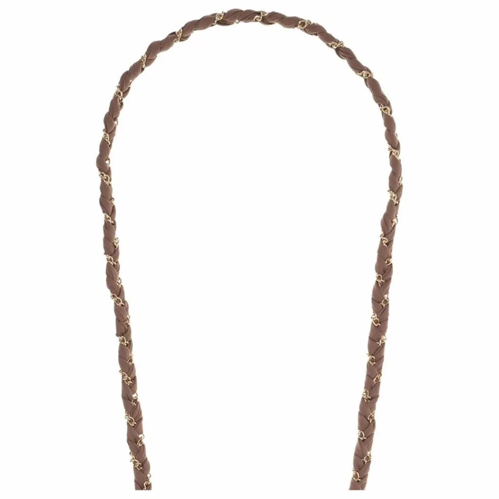 - Chaine longue Doha en tissu marron et chaine dorés avec mousquetons dorés
