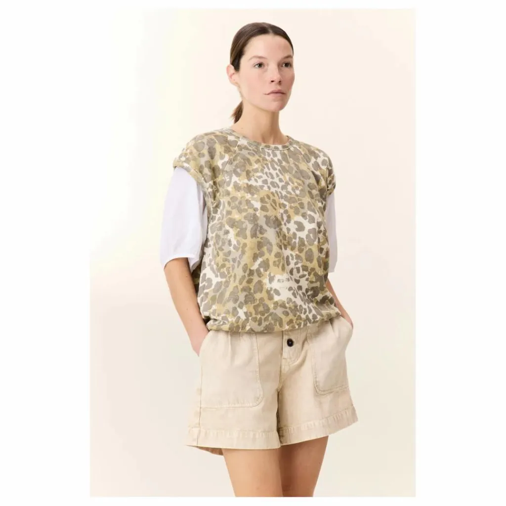 - Le sweat sans manches Sirop Faded est la pièce idéale pour adopter l’art de la superposition avec style. Son imprimé léopard légèrement délavé apporte une touche audacieuse et vintage aux looks de la femme Leon & Harper.