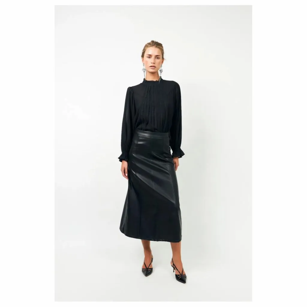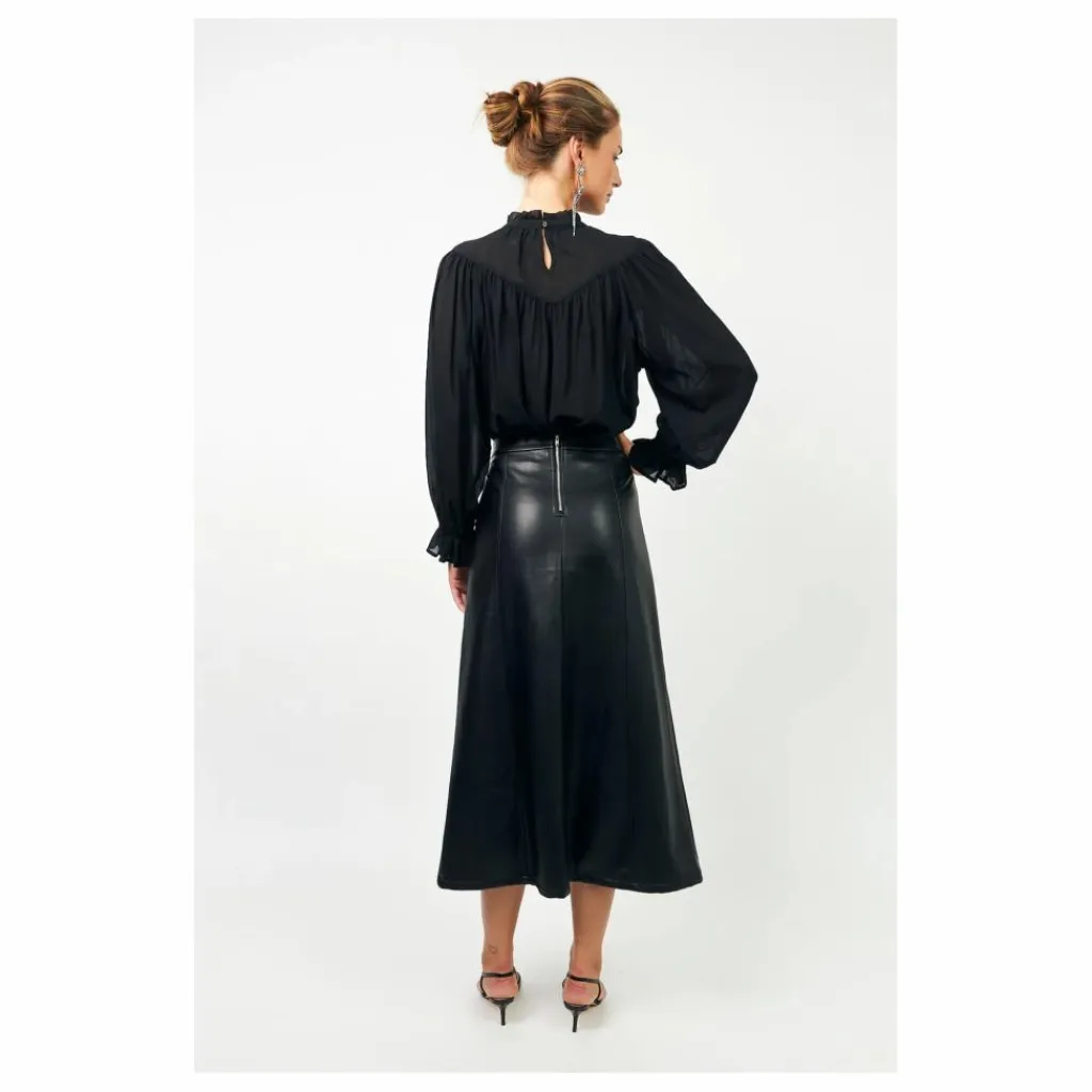 - La jupe maxi LaziseLL est un modèle élégant et audacieux, conçu dans une qualité de faux cuir souple. La matière confère à la jupe un aspect luxueux et une brillance subtile, tandis que la silhouette en ligne A crée une fluidité féminine.