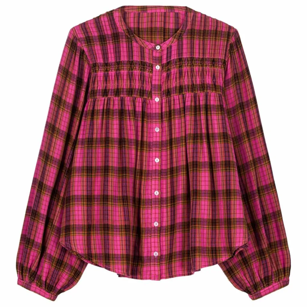 Blouse à carreaux en double gaze de coton tissé teint.