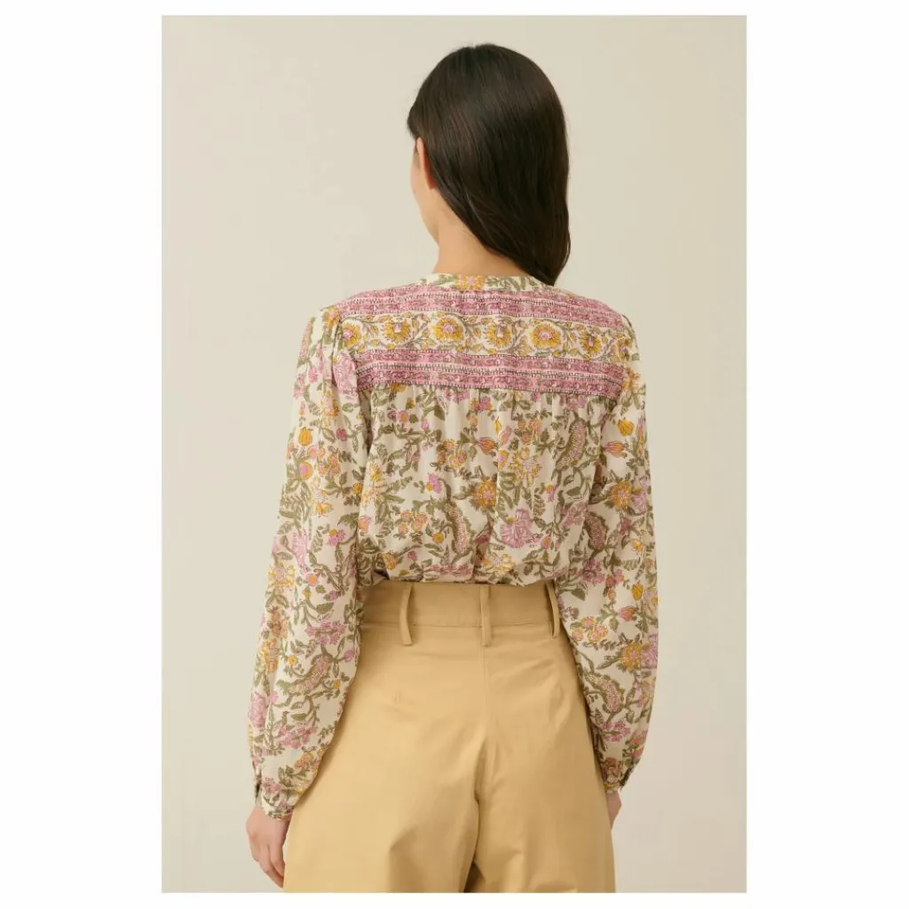 Blouse col rond en voile de coton fleuri.