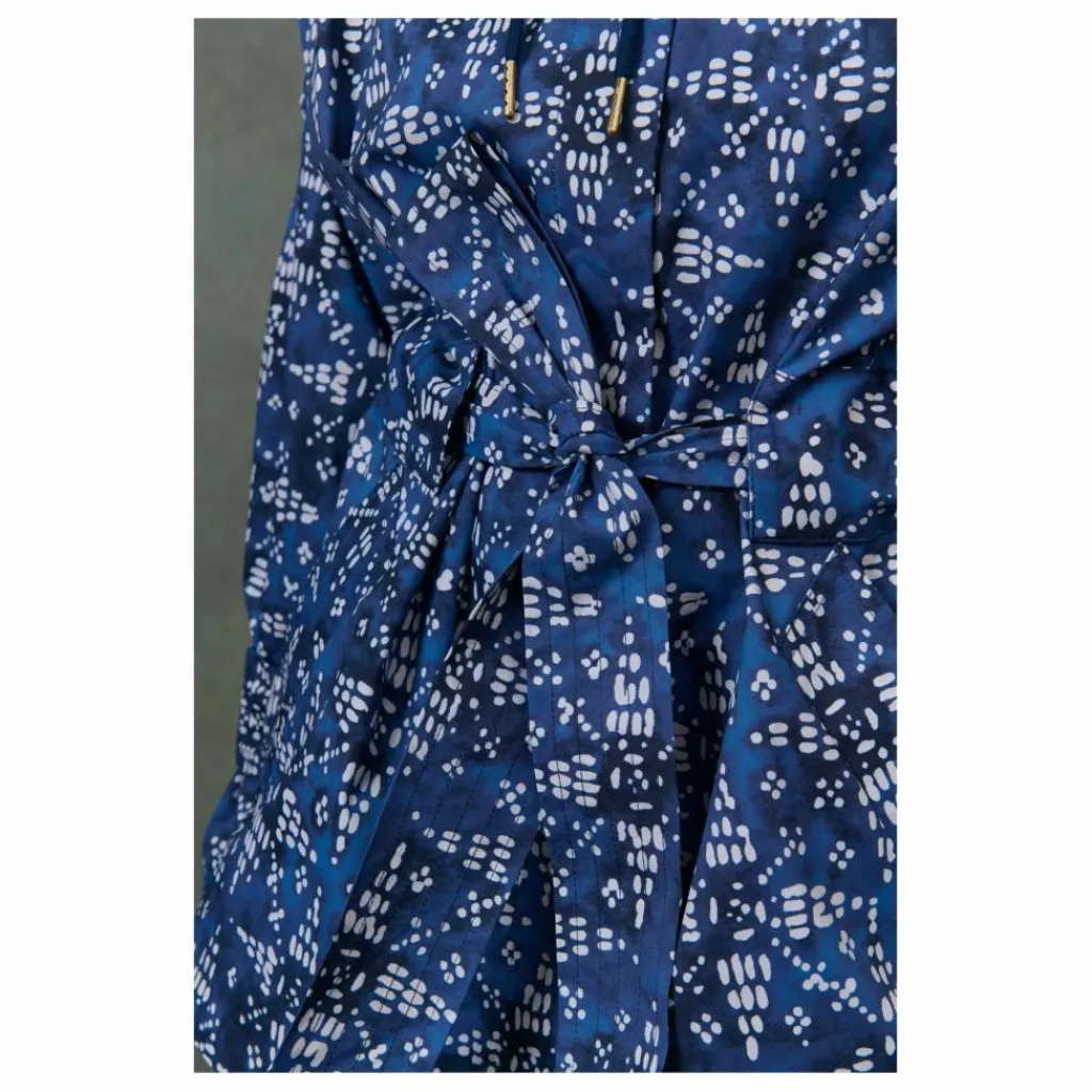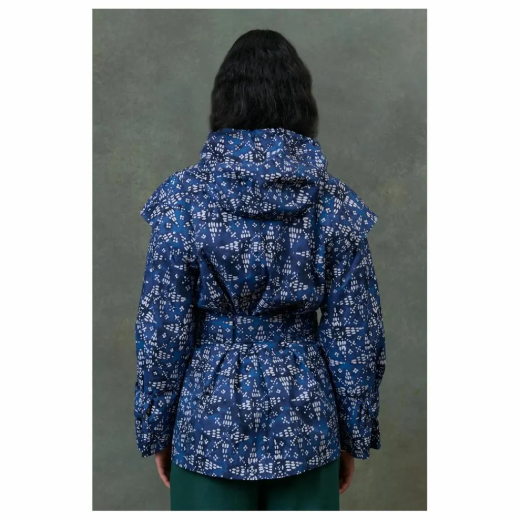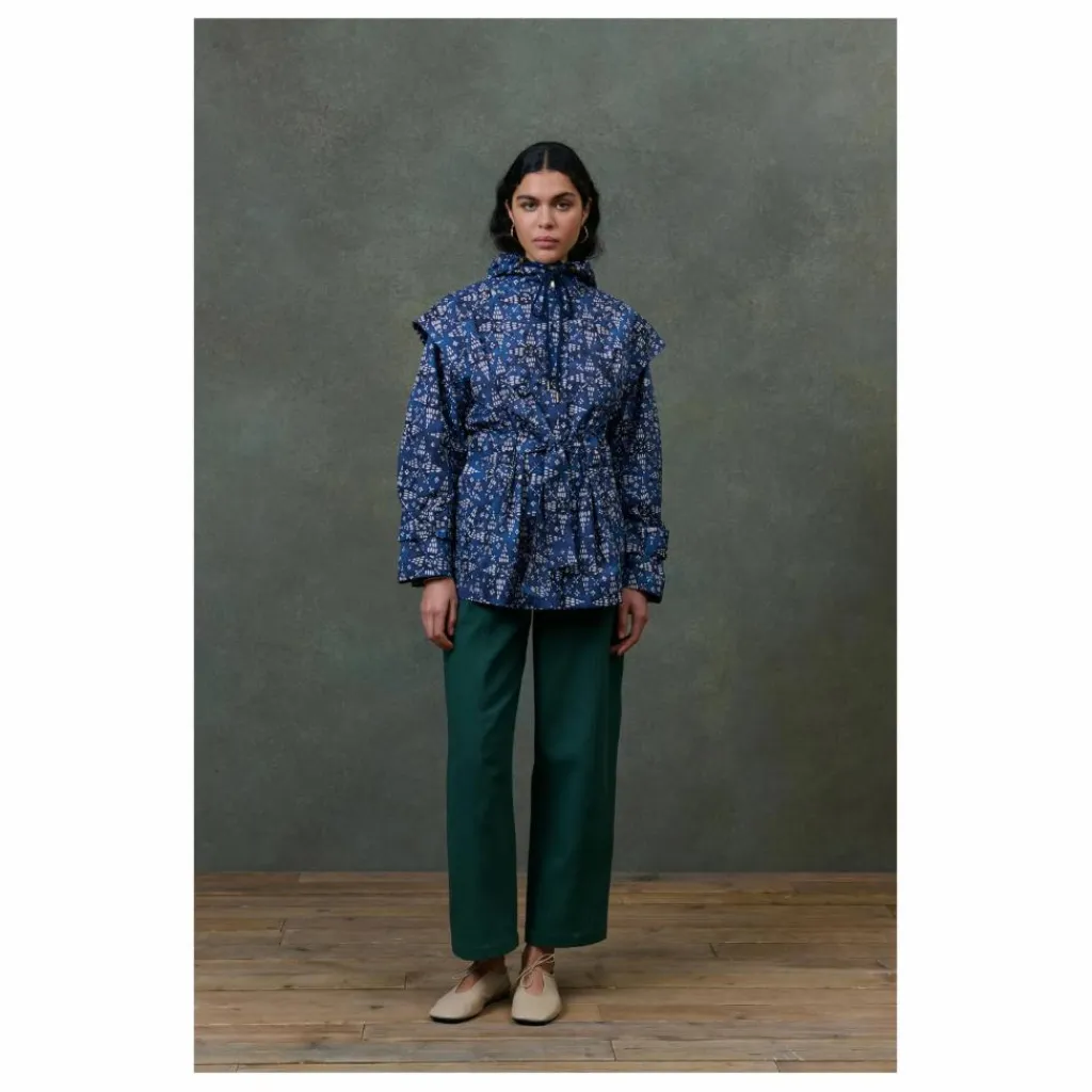 Fermeture zippée dissimulée sous une patte pressionnée.