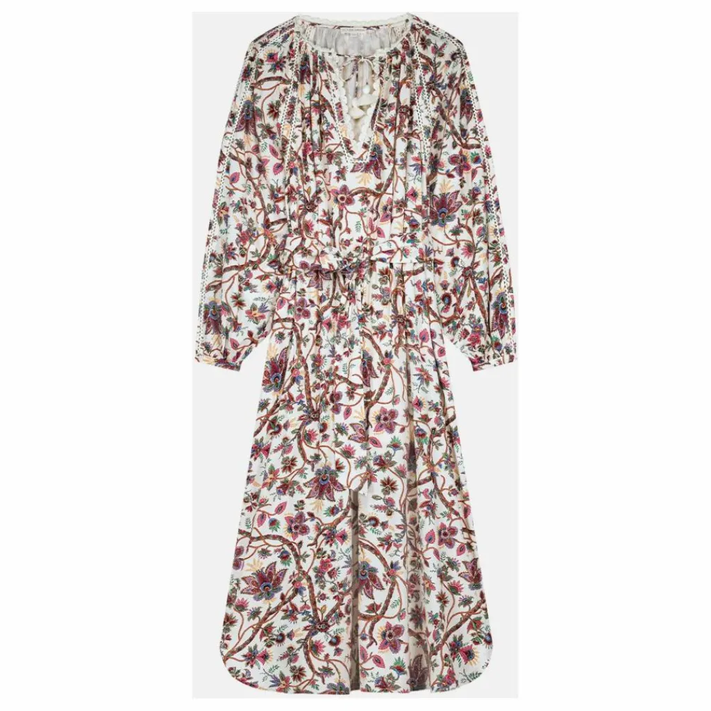 Détails de dentelle incrustée autour du V, aux emmanchures et au-dessus des manches.