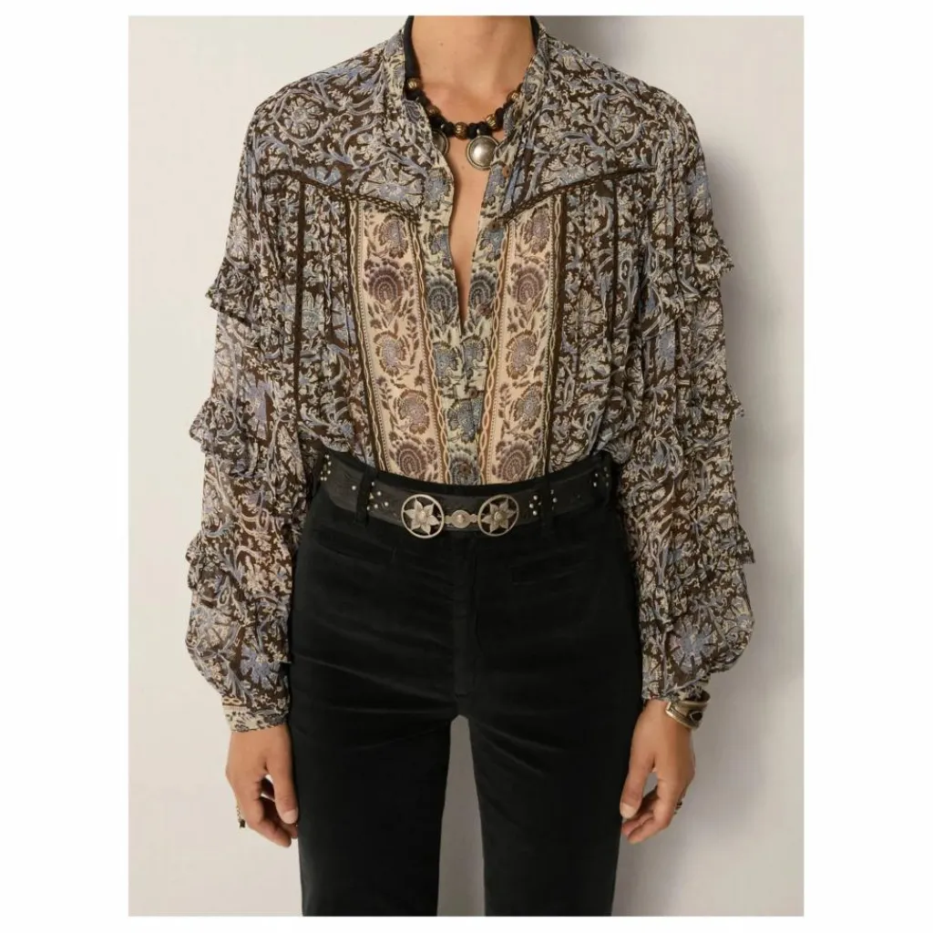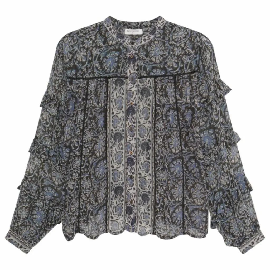 - La Blouse Amrit en Orchidée Bleue.Dobby en coton avec un grain tactile, aéré et honnête, adouci en ton à quelque chose de doux, comme de l’encre amincie avec de l’eau.