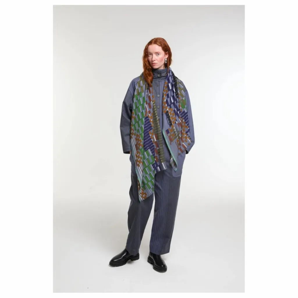 - Imprimé sur une nouvelle qualité de laine, le foulard Saccade se distingue par son tissage en chevron fluide et doux, parfait pour mettre en valeur les couleurs délicates de son design. Le rythme du motif évolue subtilement à travers un jeu de couleurs qui crée un effet visuel dynamique, où les teintes se mélangent et se fondent avec harmonie. Ce foulard offre une palette de couleurs mixtes, idéales pour s’adapter et compléter vos silhouettes, tout en apportant une touche de modernité et d’élégance.