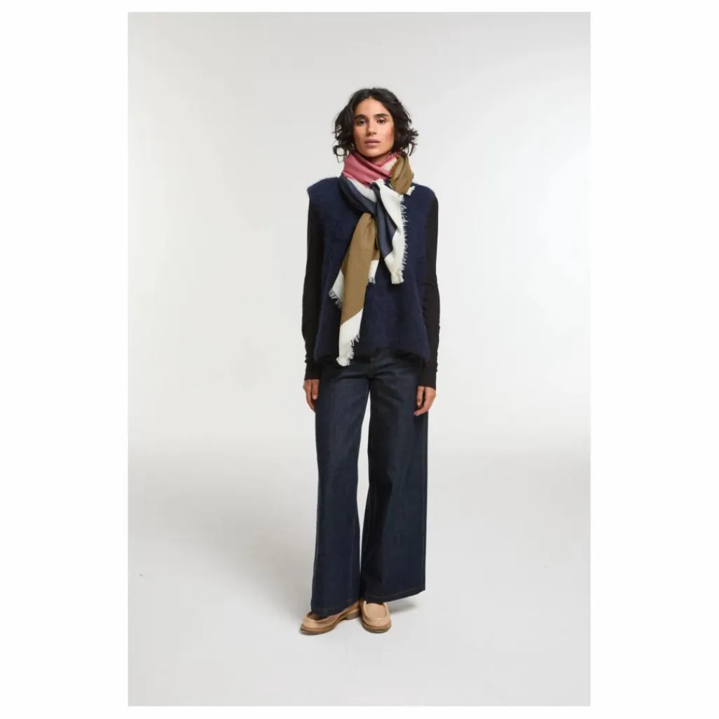 - Pensé pour la saison froide, le foulard Suzon se décline dans une laine plus dense, offrant une version plus chaude et enveloppante. Son tissage texturé et ses bordures frangées lui donnent une touche légèrementauthentique et chaleureuse, sans rien perdre de l’élégance propre à Mapoésie. Il joue avec subtilité sur les contrastes et les nuances de couleur, apportant à vos silhouettes une présence à la fois douce et affirmée.