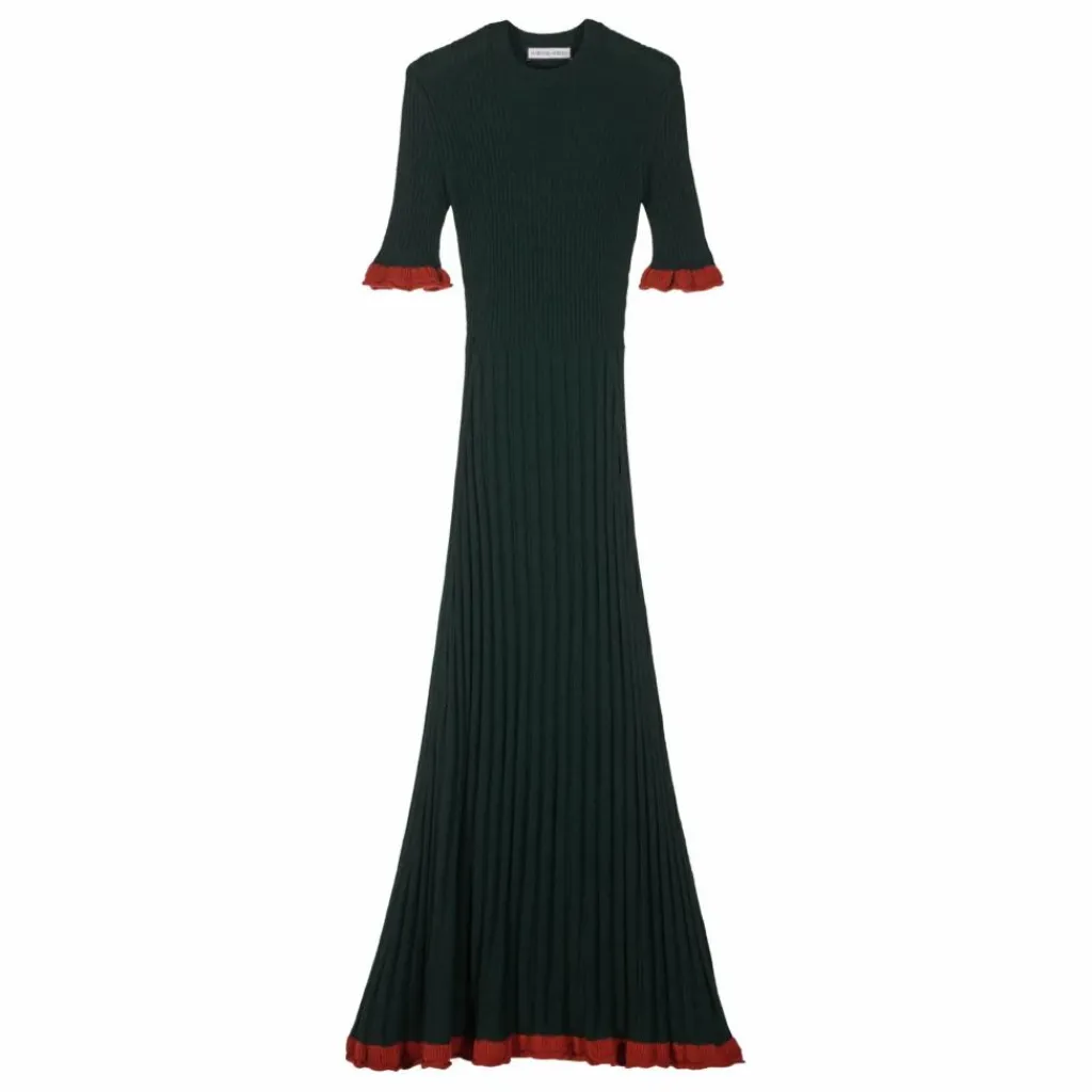 - Robe longue et ajustée en laine mérinos vert foncé