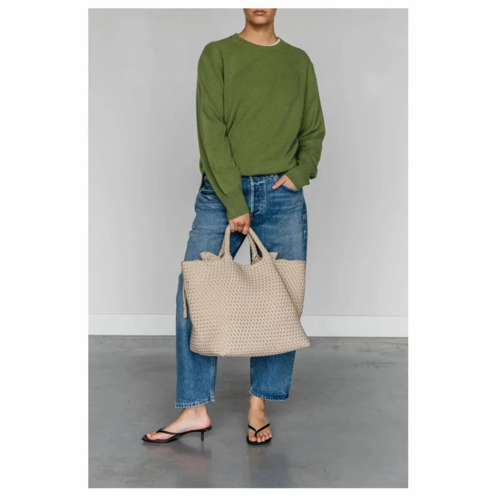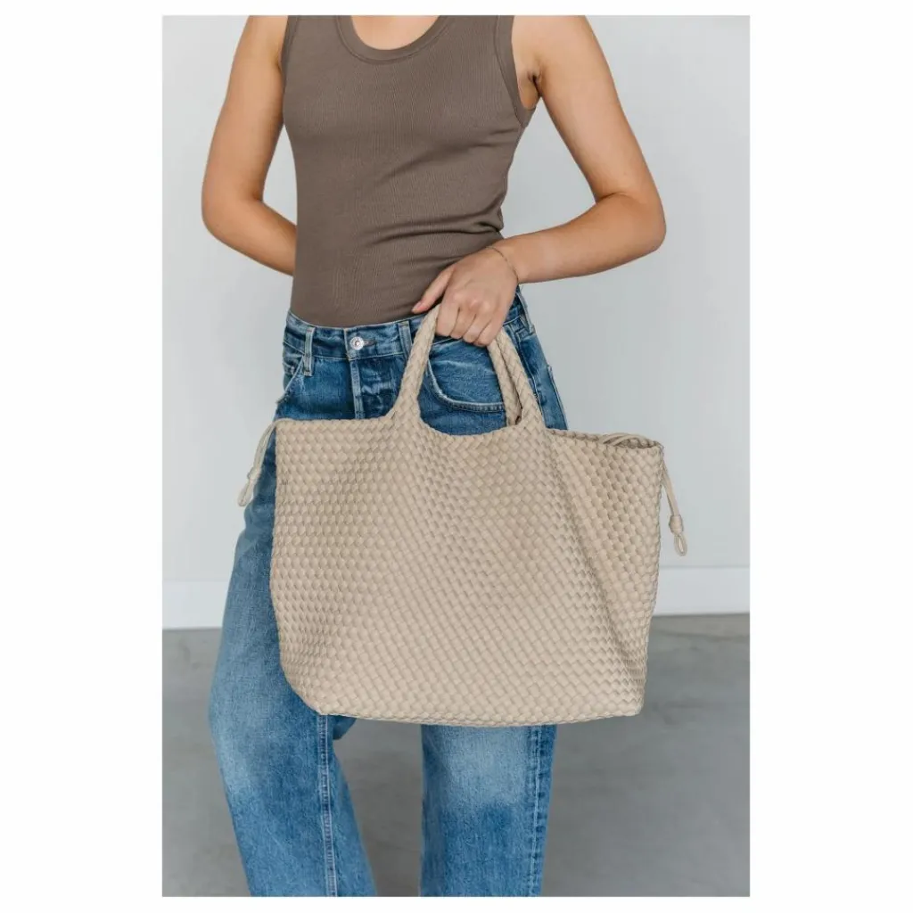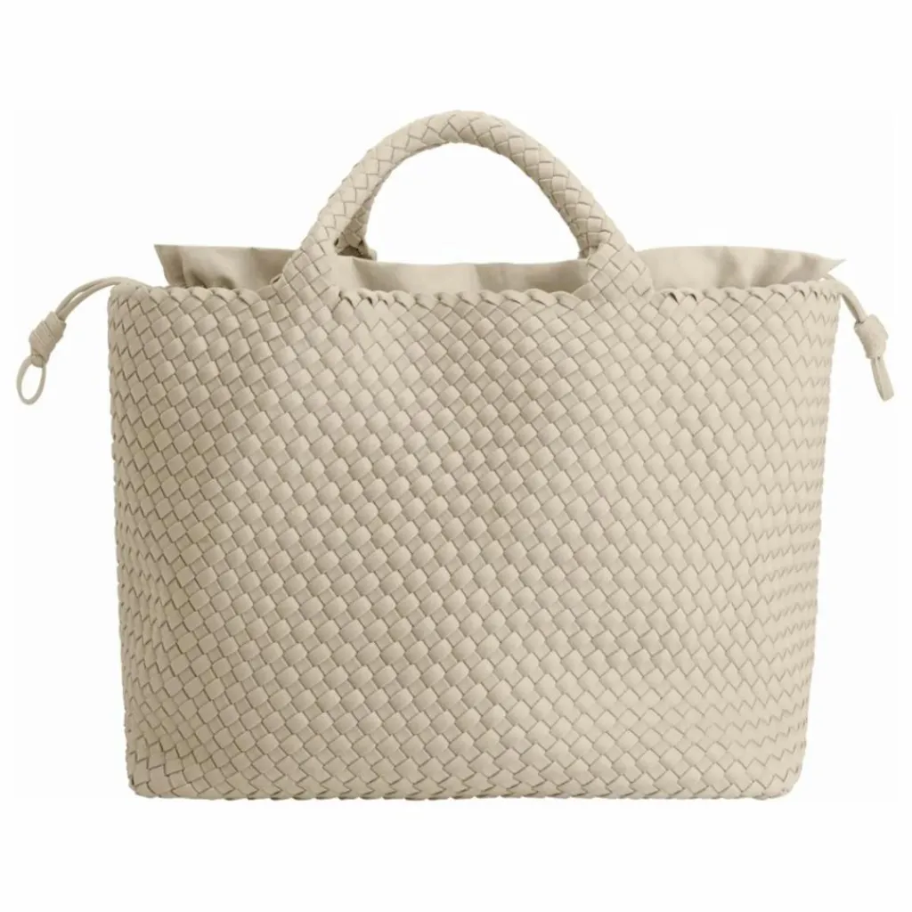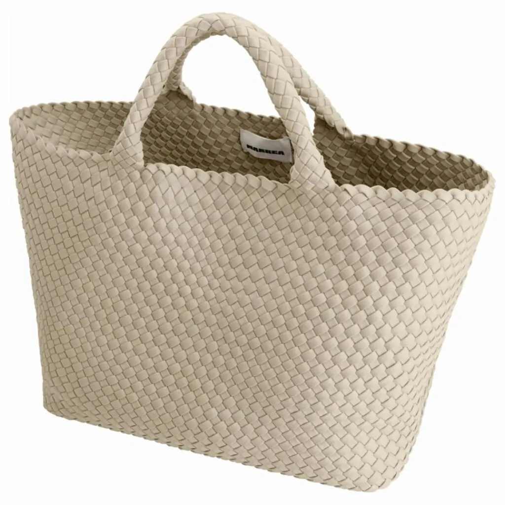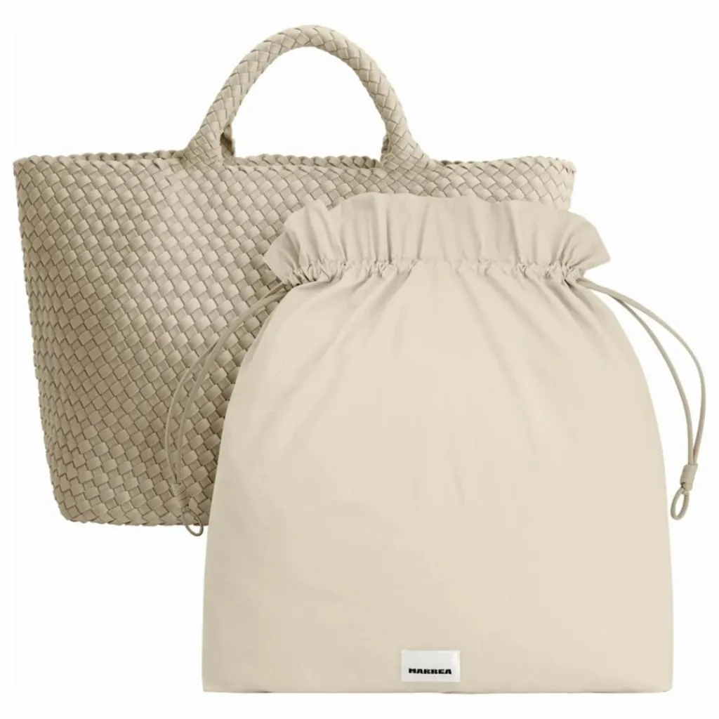 - Spacieux et élégant, le grand sac Marrea est conçu pour ceux qui ont besoin d’espace supplémentaire sans pour autant renoncer à l’élégance. Tissé à la main en néoprène de haute qualité, ce sac est léger, souple et facile à nettoyer, ce qui en fait le choix idéal pour les voyages, les journées à la plage et les escapades du week-end. Là où le sable rencontre la mer, créant une beauté classique et naturelle. Cette couleur dégage un sentiment de détente et de tranquillité, vous invitant à vous détendre et à vous prélasser dans la chaleur du soleil sans le moindre souci. No Tan Lines capture l’essence de l’élégance intemporelle et du look neutre.