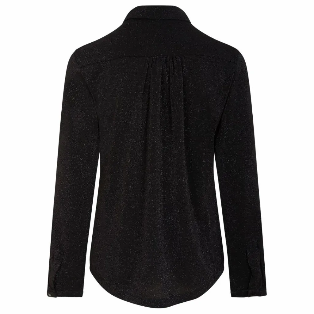 - Chemisier lurex Momonì, coupe confortable soulignée par l’ourlet légèrement arrondi et les délicats poignets à bande.