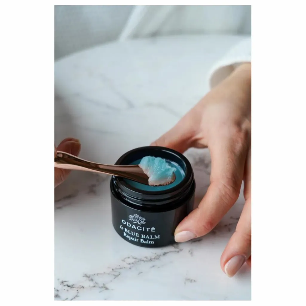 - Ce baume est formulé à base de squalane, de beurre de karité et d’un trio riche en oméga d’huiles de chanvre, de jojoba et d’amande. Ces dernières créent une barrière cutanée d’apparence saine et une peau plus souple et rosée. Le squalane est produit par le corps humain et sa concentration dans la peau diminue avec l’âge, il agit comme un véritable booster de jeunesse.