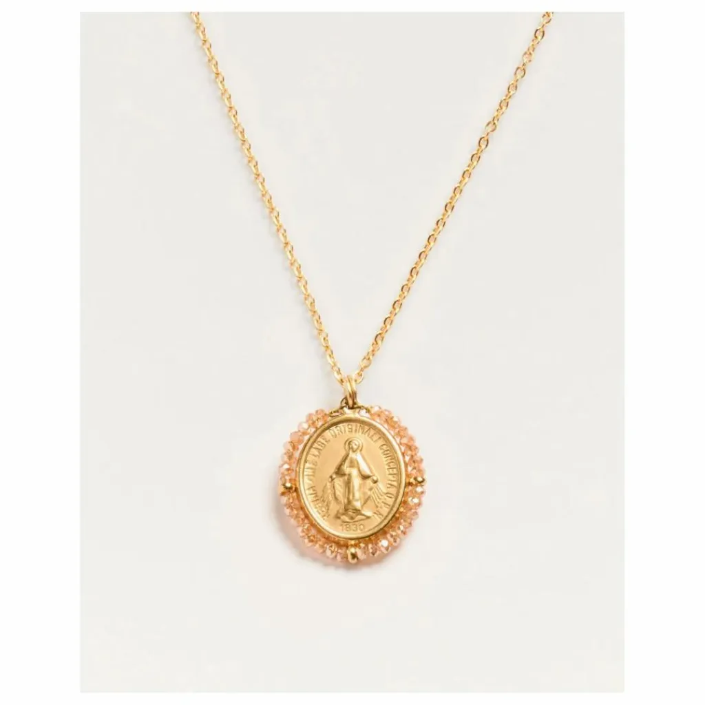 - Collier et médaille en acier inoxydable doré et perles d’acryliques