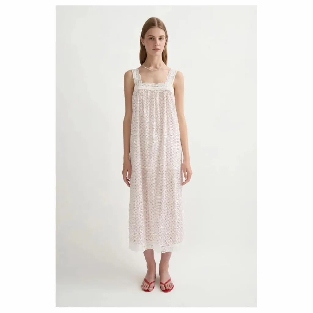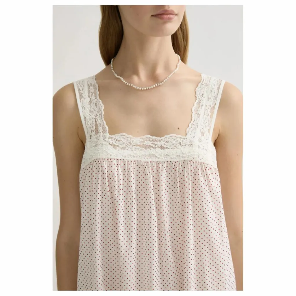- AVEC SES MOTIFS À POIS CRAMOISIS ET SES BORDURES EN DENTELLE DÉLICATE, LA ROBE MARLOWE REHAUSSE SANS EFFORT VOTRE STYLE QUOTIDIEN D’UNE TOUCHE D’ÉLÉGANCE SUBTILE. CONÇUE POUR ÊTRE PORTÉE SUR LE PANTALON MARLOWE, ELLE PRÉSENTE DES DÉTAILS EN DENTELLE JUDICIEUSEMENT PLACÉS QUI REHAUSSENT L’ENSEMBLE.