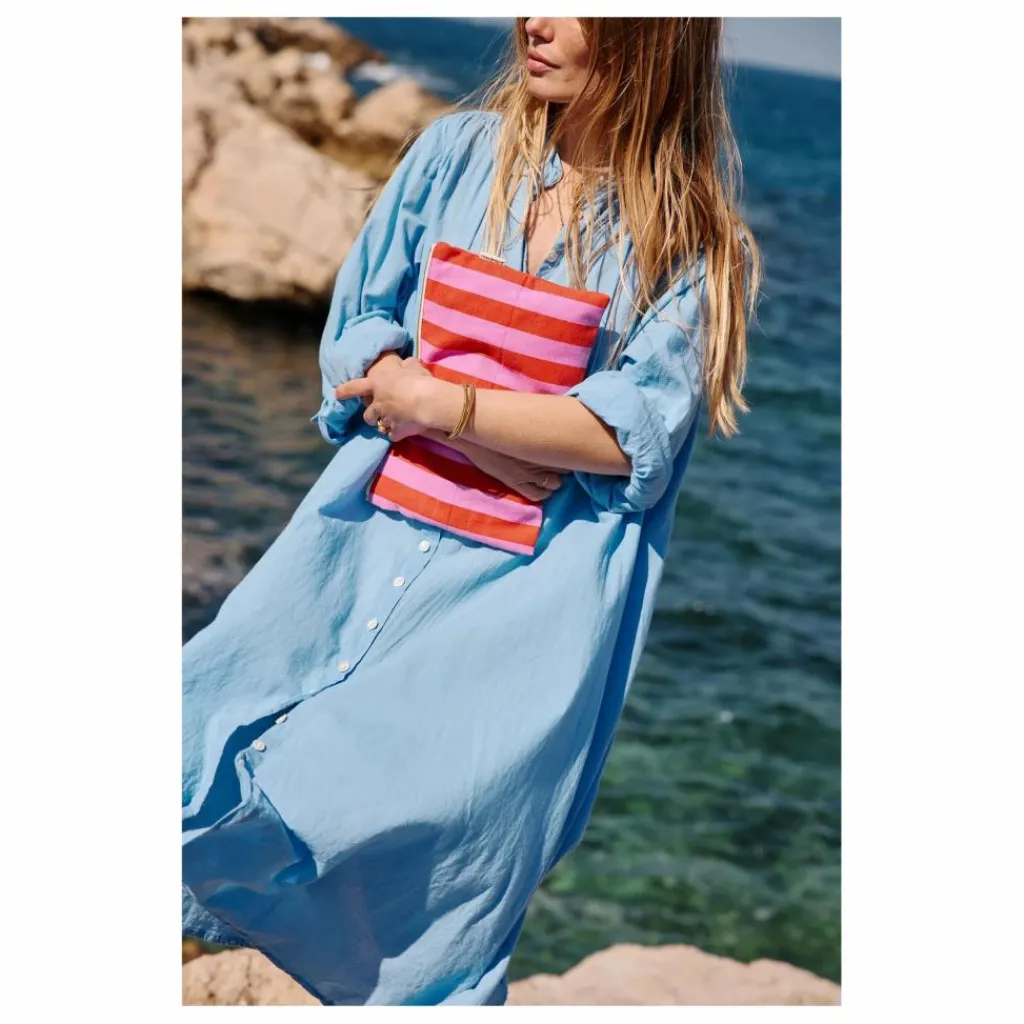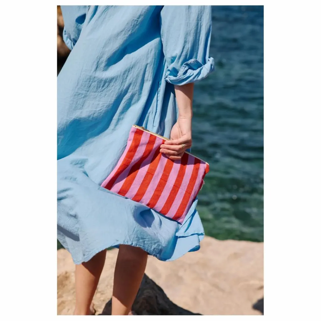 - LILI POCHETTE COLORIS DAMIER ORCHIDEE / TOMATO 100% COTON DOUBLURE EN COTON ENDUIT TAILLE : 30 X 21CM FABRIQUE AU PORTUGAL CERTIFIE OEKO TEX