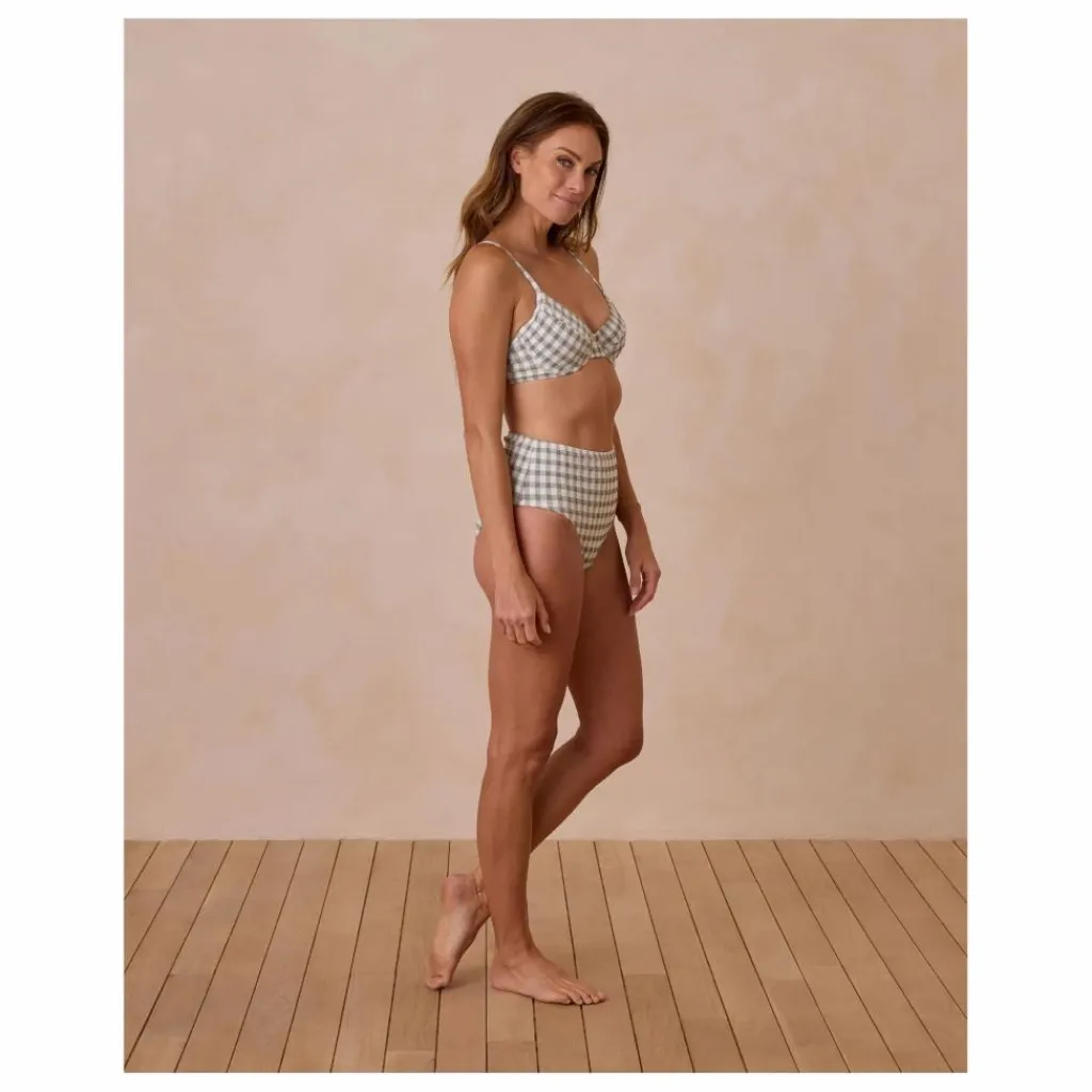 - Bas de bikini flatteur à taille haute, entièrement couvrant, avec un indice de protection solaire de 50+, avec notre imprimé à carreaux d’eucalyptus sur notre teinte ivoire. Ce style à carreaux intemporel est un classique vintage.