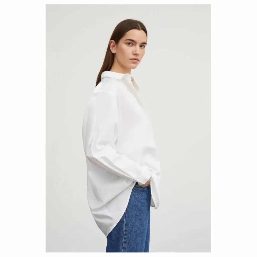- Chemise en coton surdimensionnée avec col classique, poche de poitrine et plis au dos.