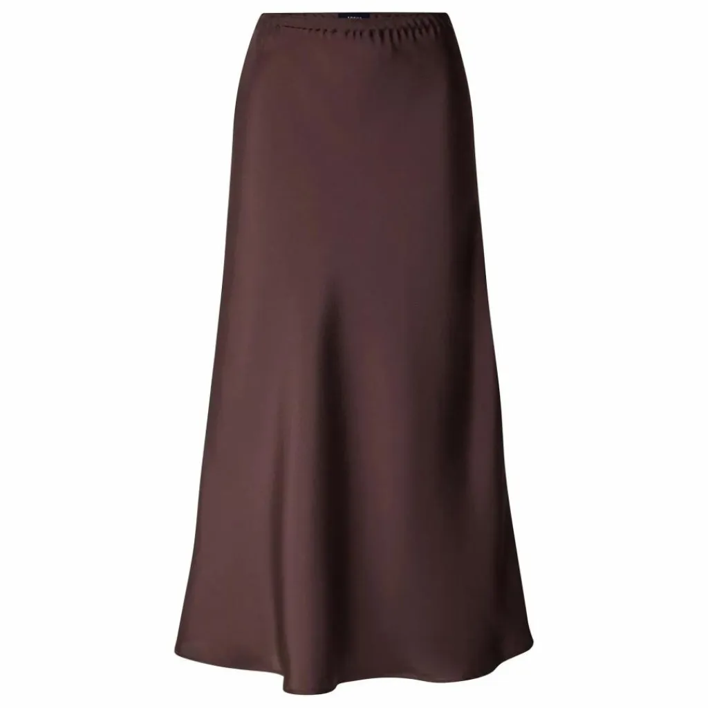 - Jupe longueur midi en sergé fluide prune,Coupe en biais, légèrement évasée,Jupe mi-longue,Taille élastiquée