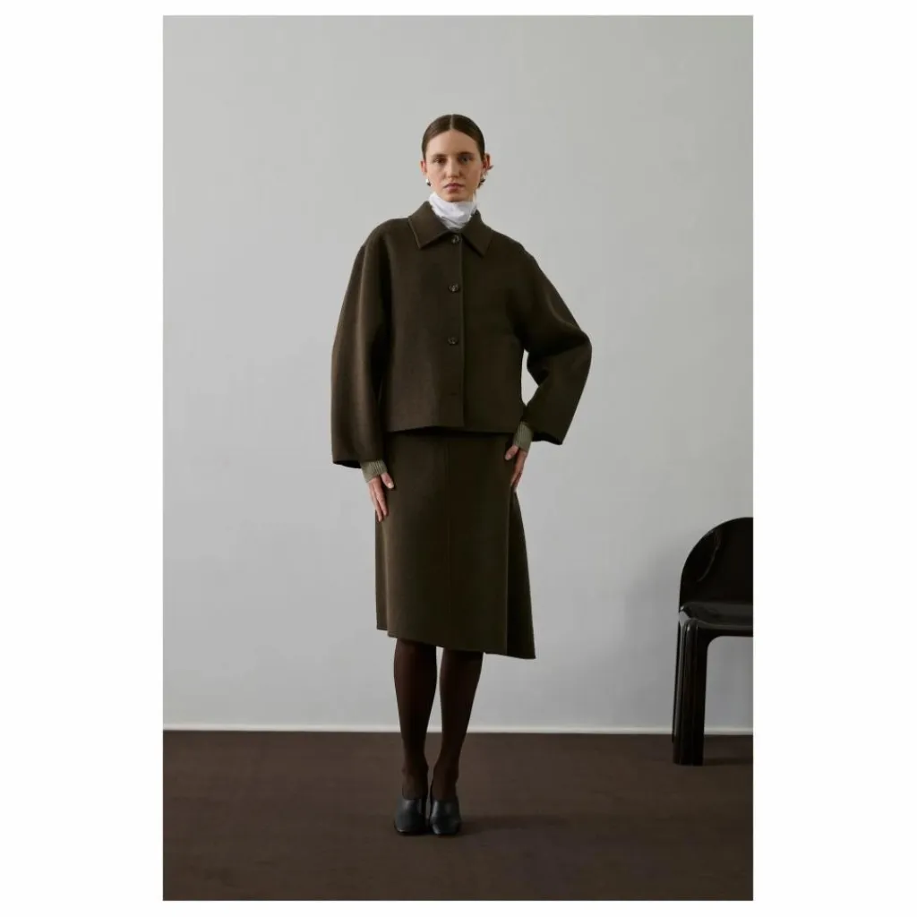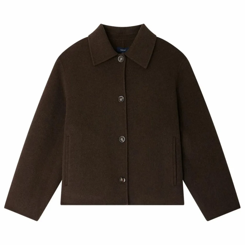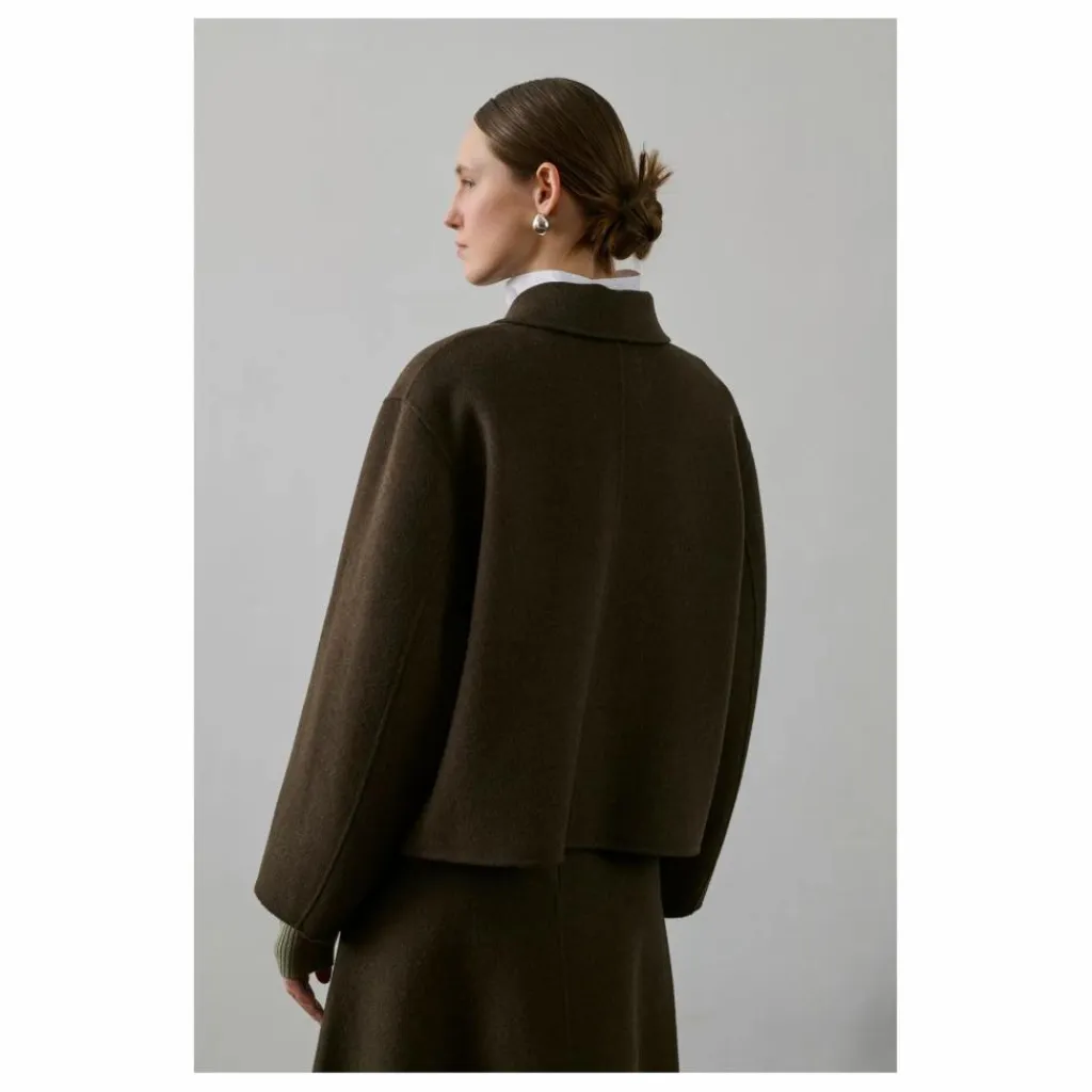 - Manteau court en laine double face,Coupe droite,,Col chemise,Ouverture boutonnée,Deux poches passepoilées devant,,,