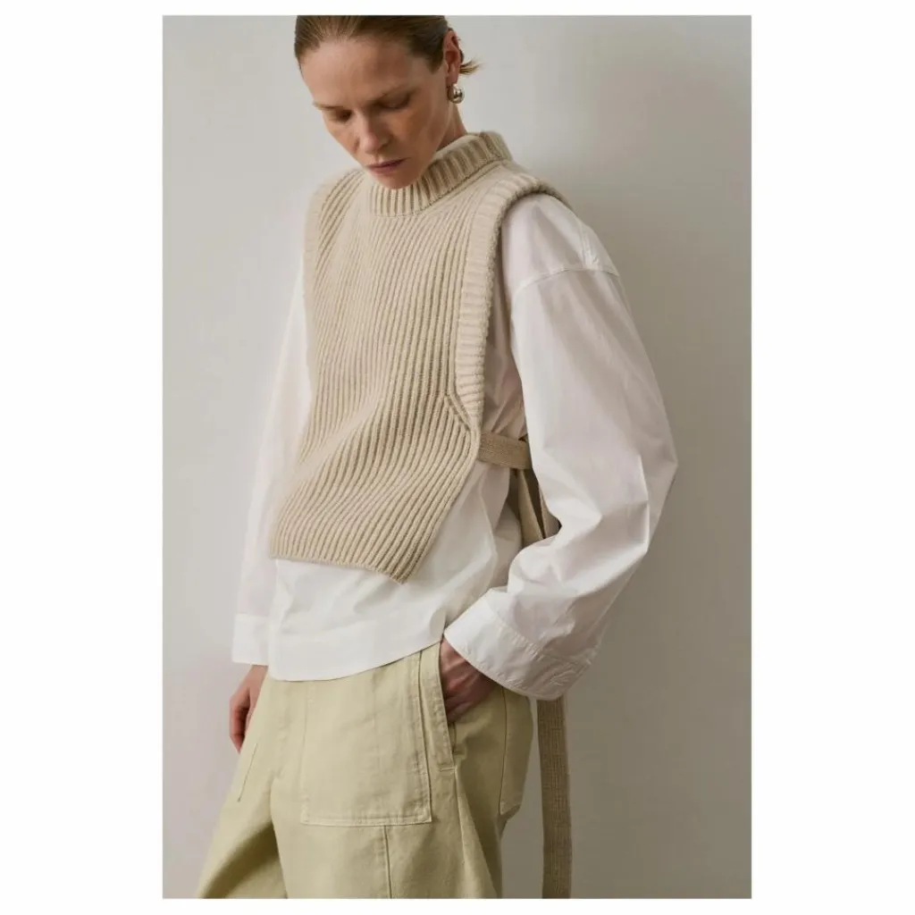 - Plastron sans manches côtelé,coupe droite,sans manches,col rond,Liens de serrage sur les côtés, ouvert sur les côtés,jeu de côtes sur le corps,