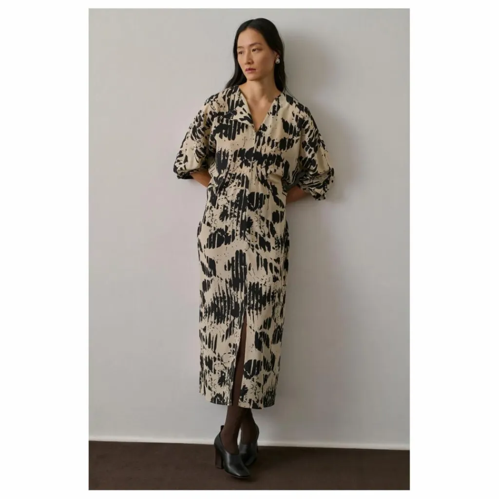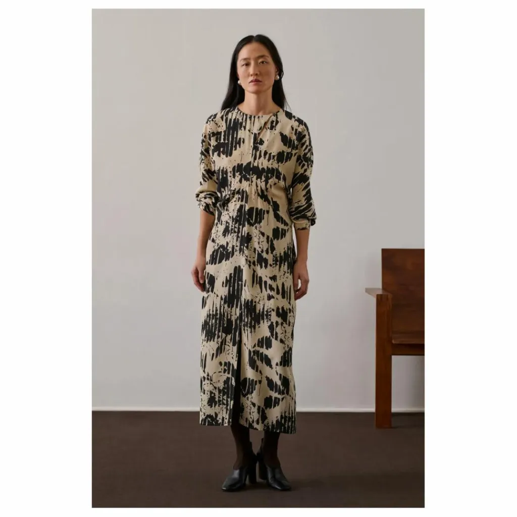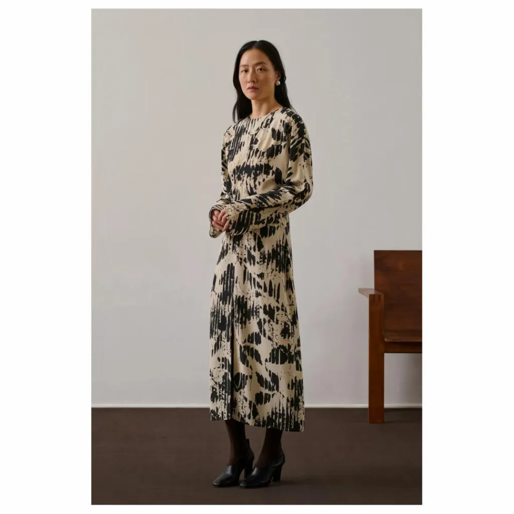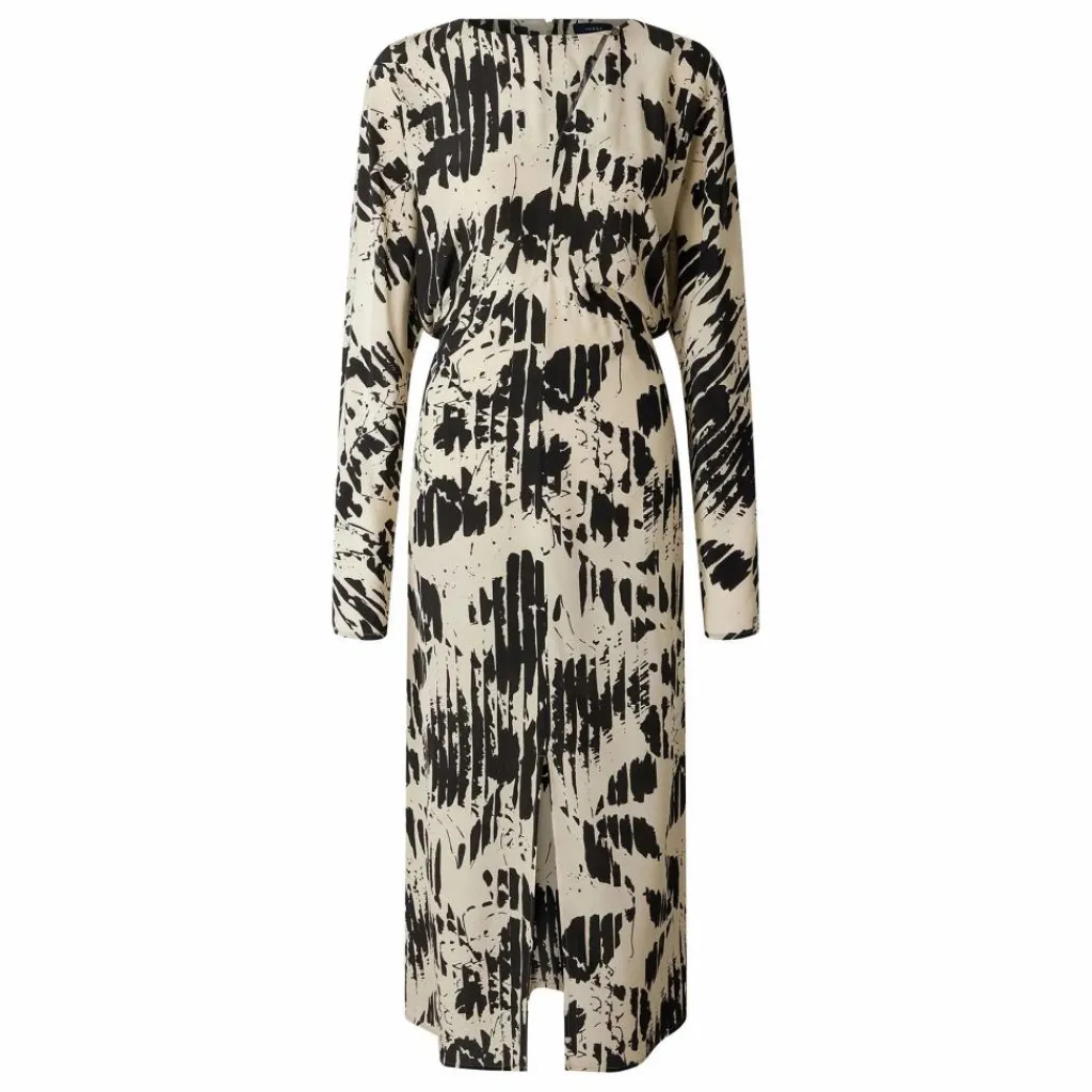 - Robe imprimé en crêpe de soie,Coupe ajustée manches longues,Longueur cheville,Encolure ronde avec boutonnage,Zip au côté et crochet invisible, ceinture amovible,,Deux fentes de chaque côté,,