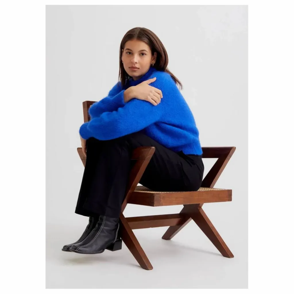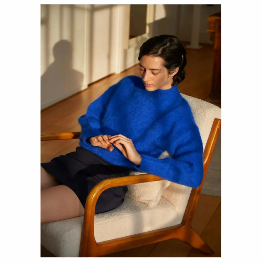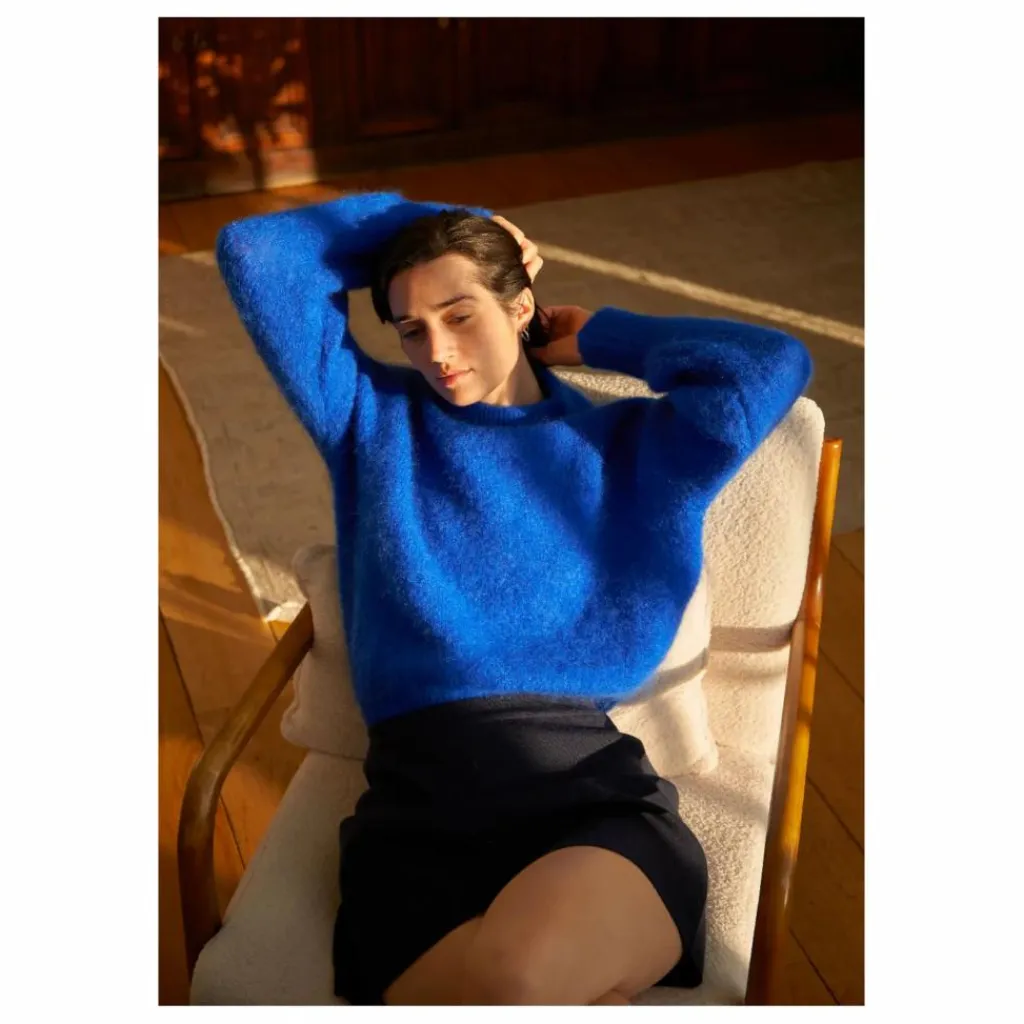 - Le pull Jane en mohair est coupé assez court. Il a été conçu pour tomber délicatement sur vos hanches. Le volume du corps et les hauts bord-côtes lui donnent un léger effet blousant.