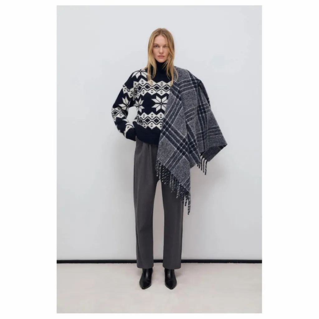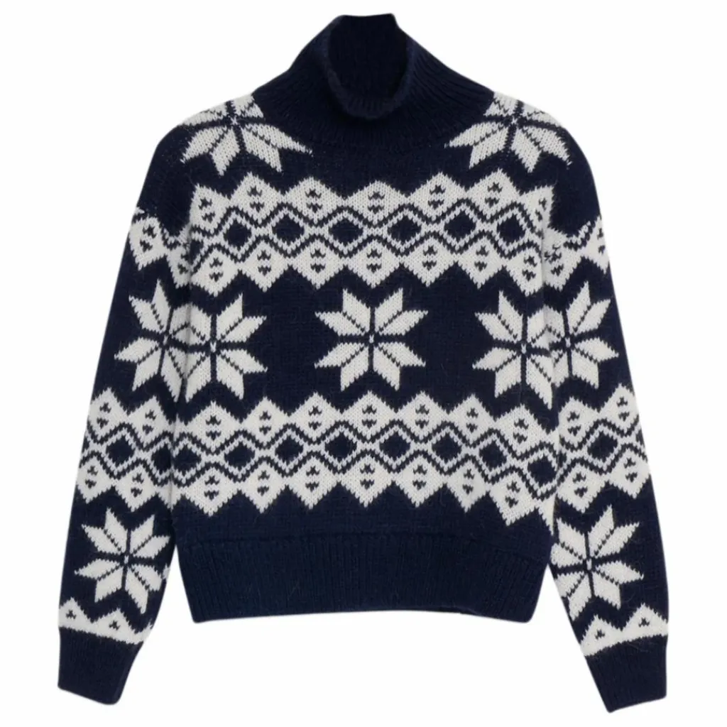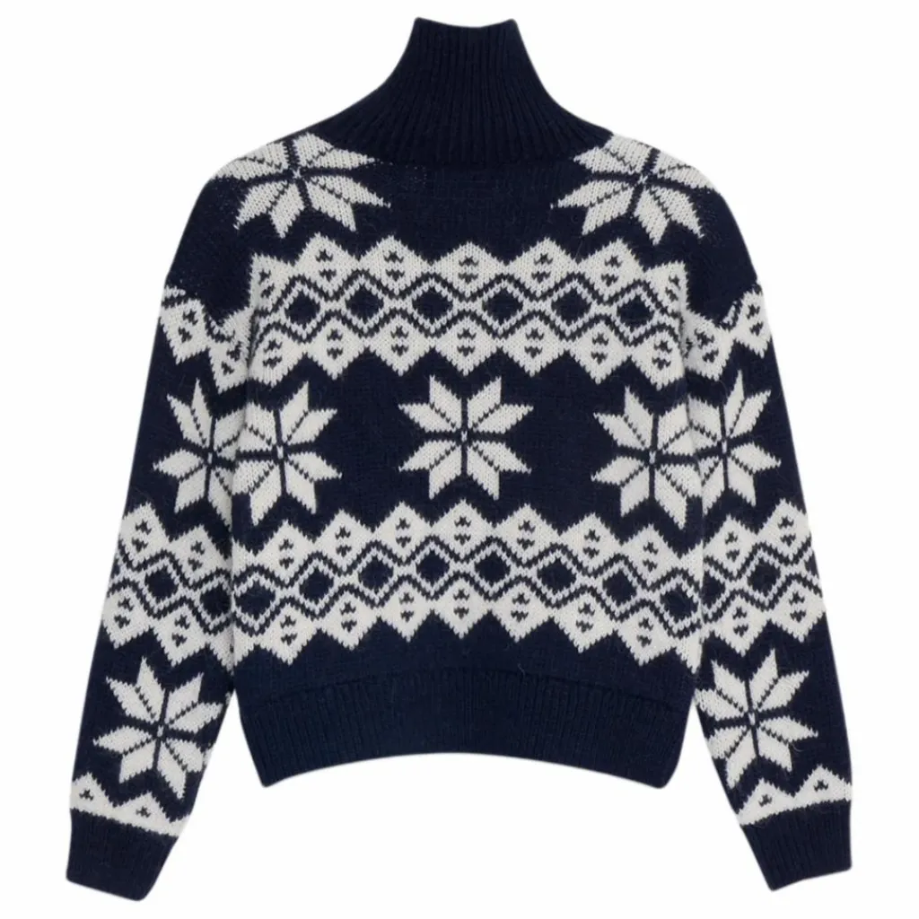 - Pull court à coupe large en luxueux mélange d’alpaga et de laine, doté d’une encolure côtelée et d’un magnifique motif jacquard contrasté.