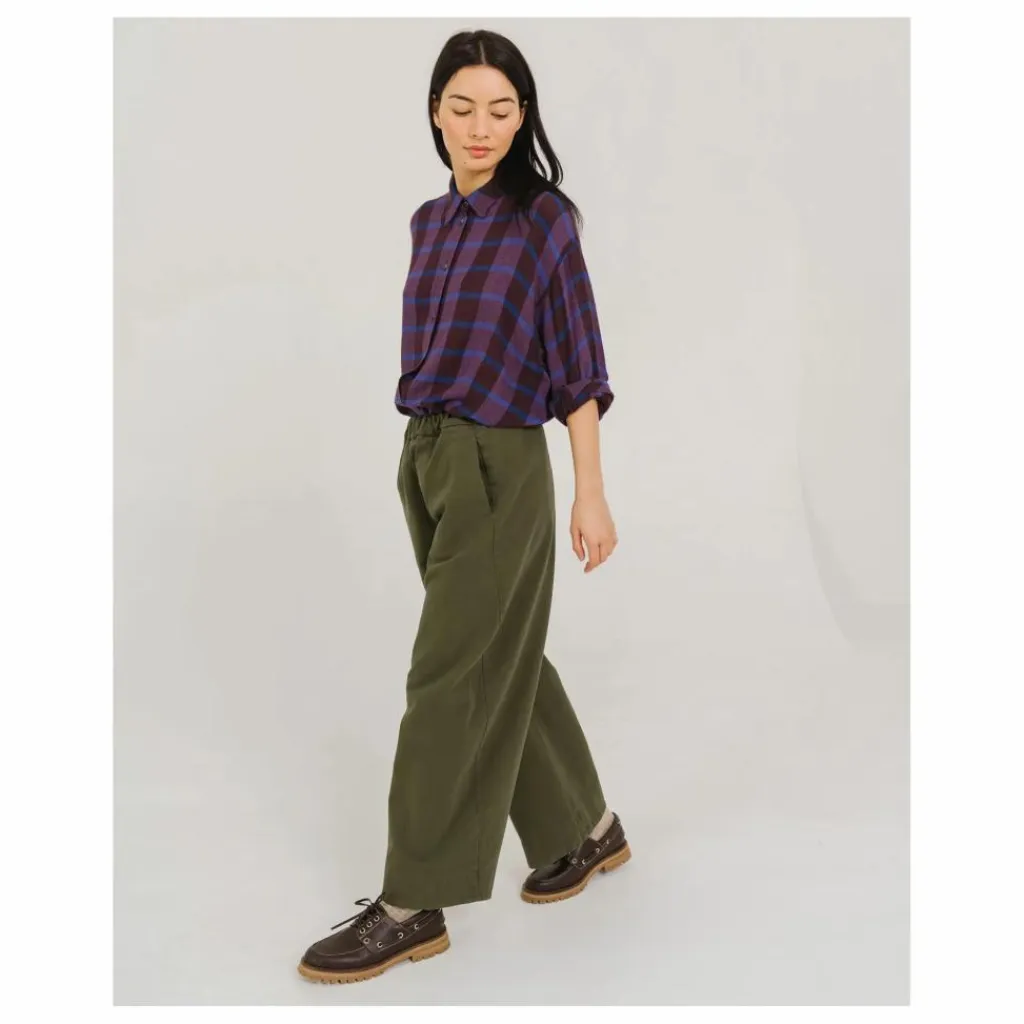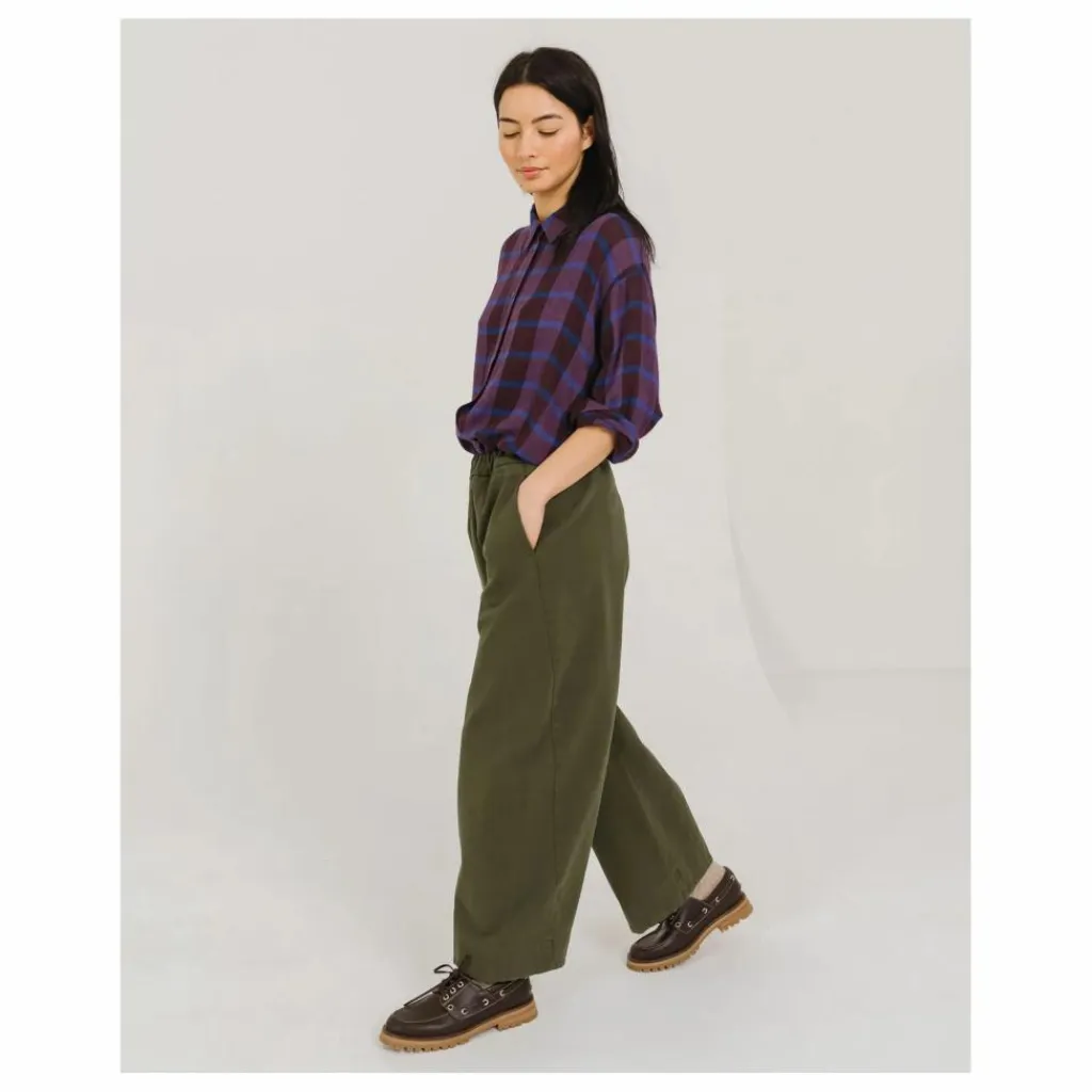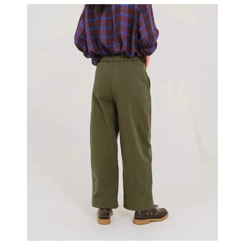 - DJOUDI est un pantalon à taille élastiquée, coupe « balloon », coutures de côtés vissées avec poches intégrées. Ce pantalon est coupé dans un sergé coton, légèrement gratté, doux et authentique.