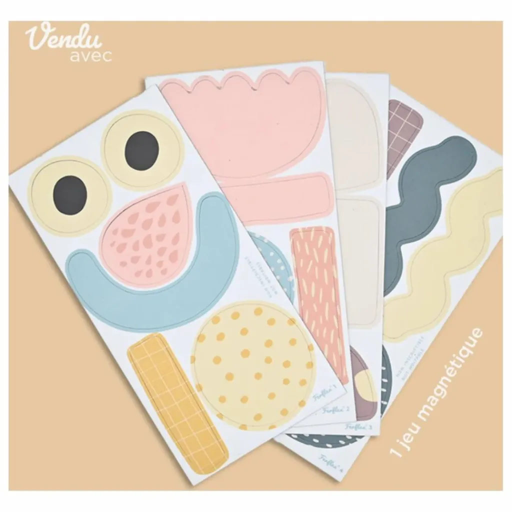 Facile à installer grâce à son adhésif repositionnable, il adhère aux surfaces lisses comme les murs, portes, meubles. Sa surface magnétique attire tous types d’aimants.OFFERT avec votre tableau : un set de formes géométriques aimantées pour jouer et créer dès la réception de votre support magnétique.