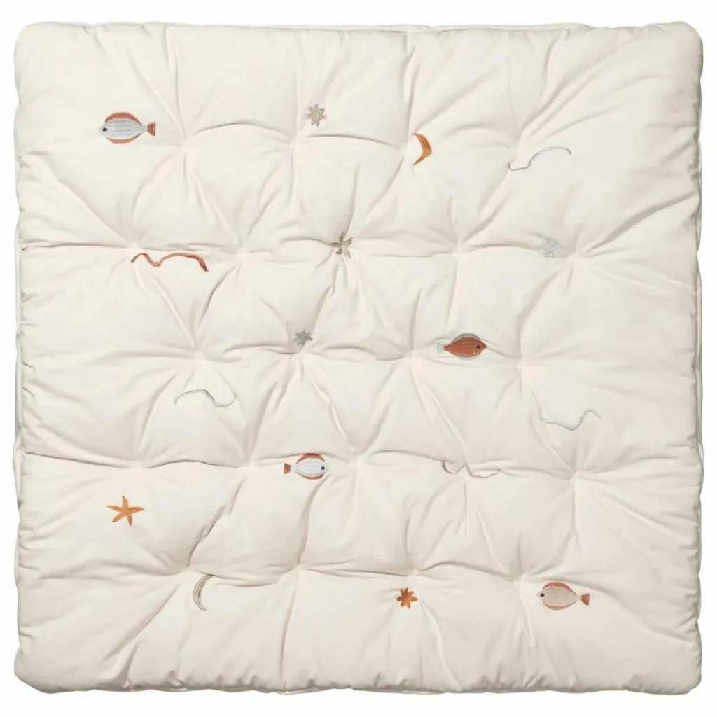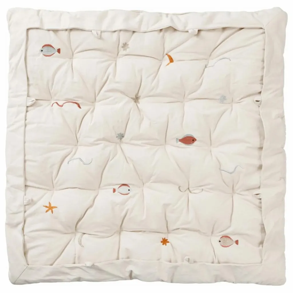 - Le Tapis de jeu matelassé Harbour est fabriqué à partir de notre toile de coton biologique non teintée, avec des motifs de vie marine brodés et de subtils détails matelassés pour plus de confort. Il comprend un panneau en tissu avec des boucles qui peut être plié pour maintenir les jouets ou caché pour mettre en valeur le motif. Rembourré d’ouate de polyester recyclé, il allie harmonieusement fonctionnalité et charme intemporel et ludique.