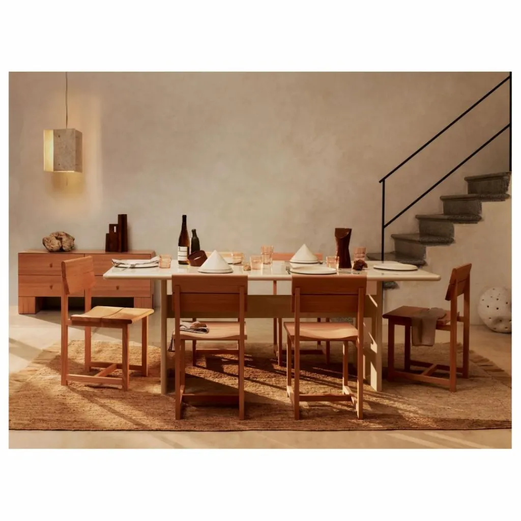 - Le Tapis Studie est méticuleusement fabriqué à la main à partir de jute 100 % naturel par des artisans qualifiés en Inde, en utilisant la technique complexe du tissage soumak. Avec un motif triangulaire minimaliste, chaque fil est tissé sur et sous les fils de trame, créant des motifs en relief, semblables à des cordes, qui ajoutent de la profondeur et de la texture. Le résultat est une surface durable, mais visuellement étonnante, chaque pièce étant une œuvre d’art unique. Cette méthode allie l’artisanat traditionnel au design moderne, mettant en valeur la précision et l’habileté.