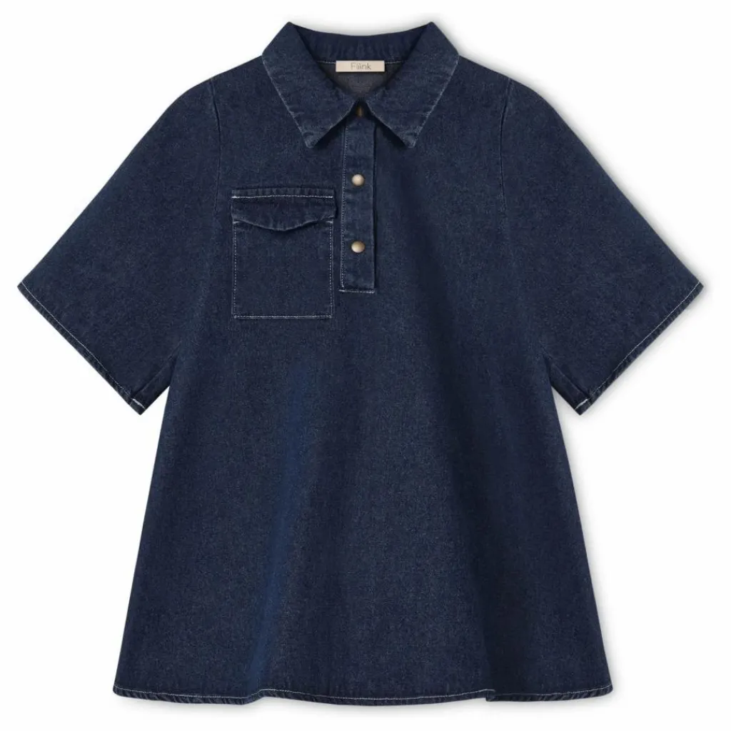 - Robe en denim fin avec col et boutons sur le devant en métal classique, donnant à la robe une expression cool. La robe a des manches amples de 2 à 3 cm de long. La robe a une coupe A-line qui la rend spacieuse et confortable à porter. La robe comporte une poche sur la poitrine avec un rabat de poche.
