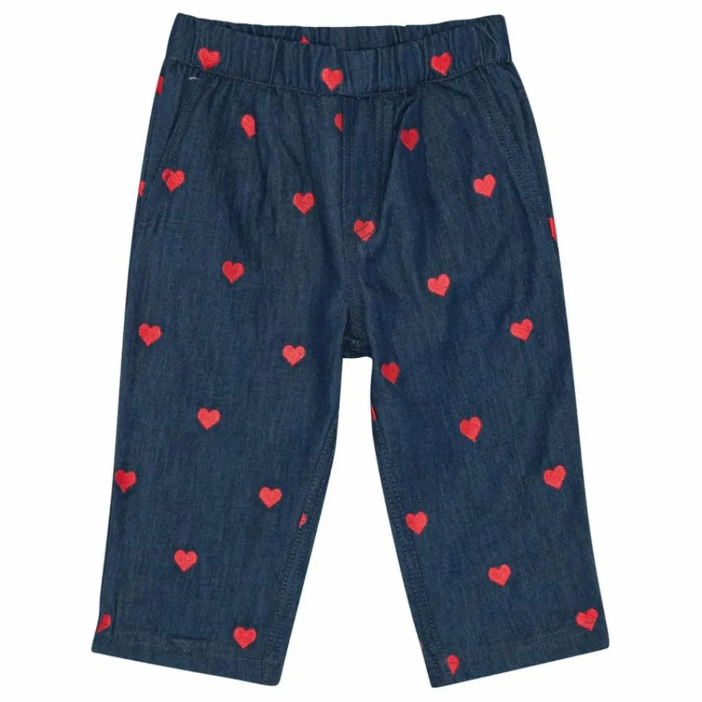 - Pantalon Amee en denim léger tissé, 100 % coton, avec broderie en forme de cœur sur tout le pourtour.