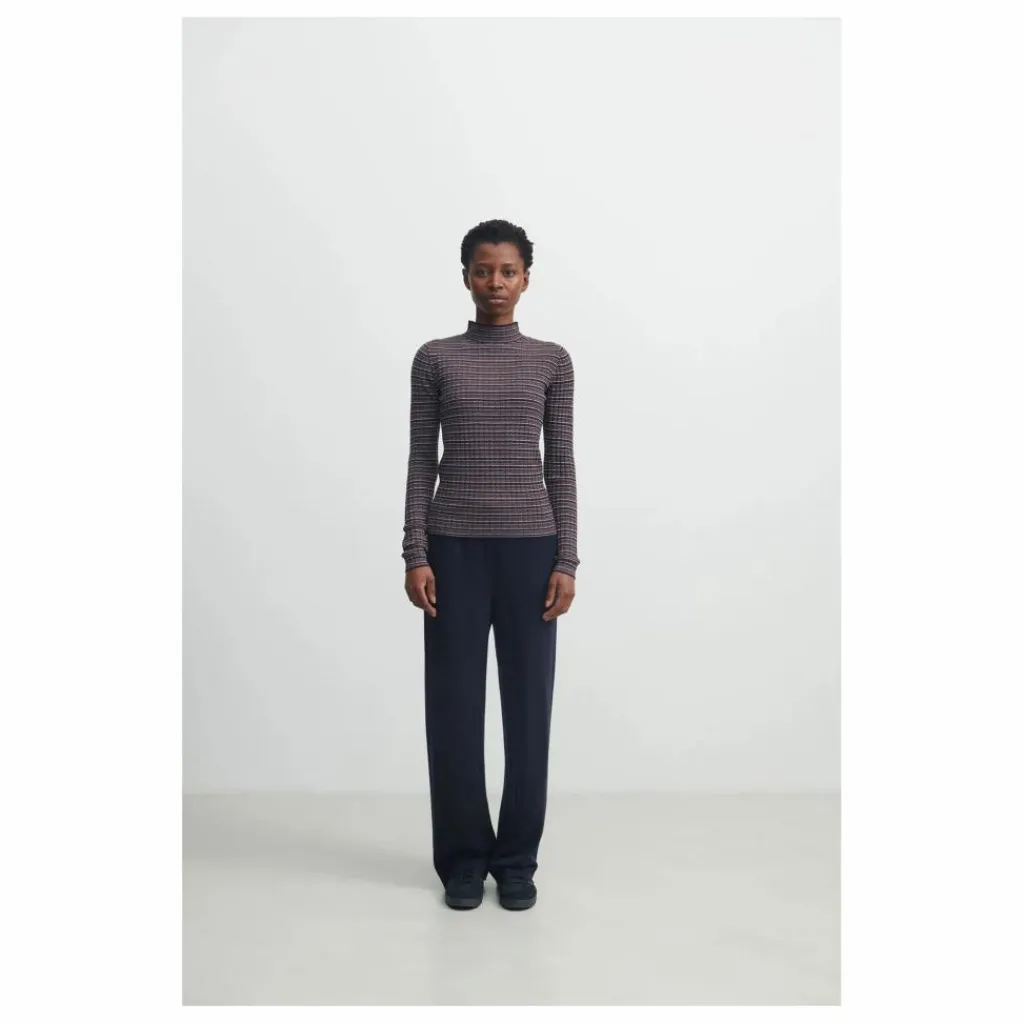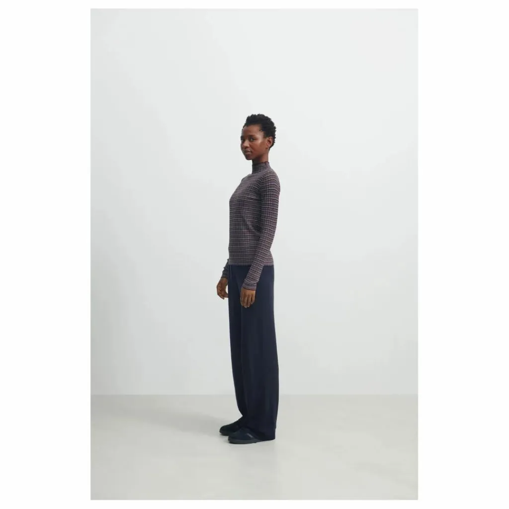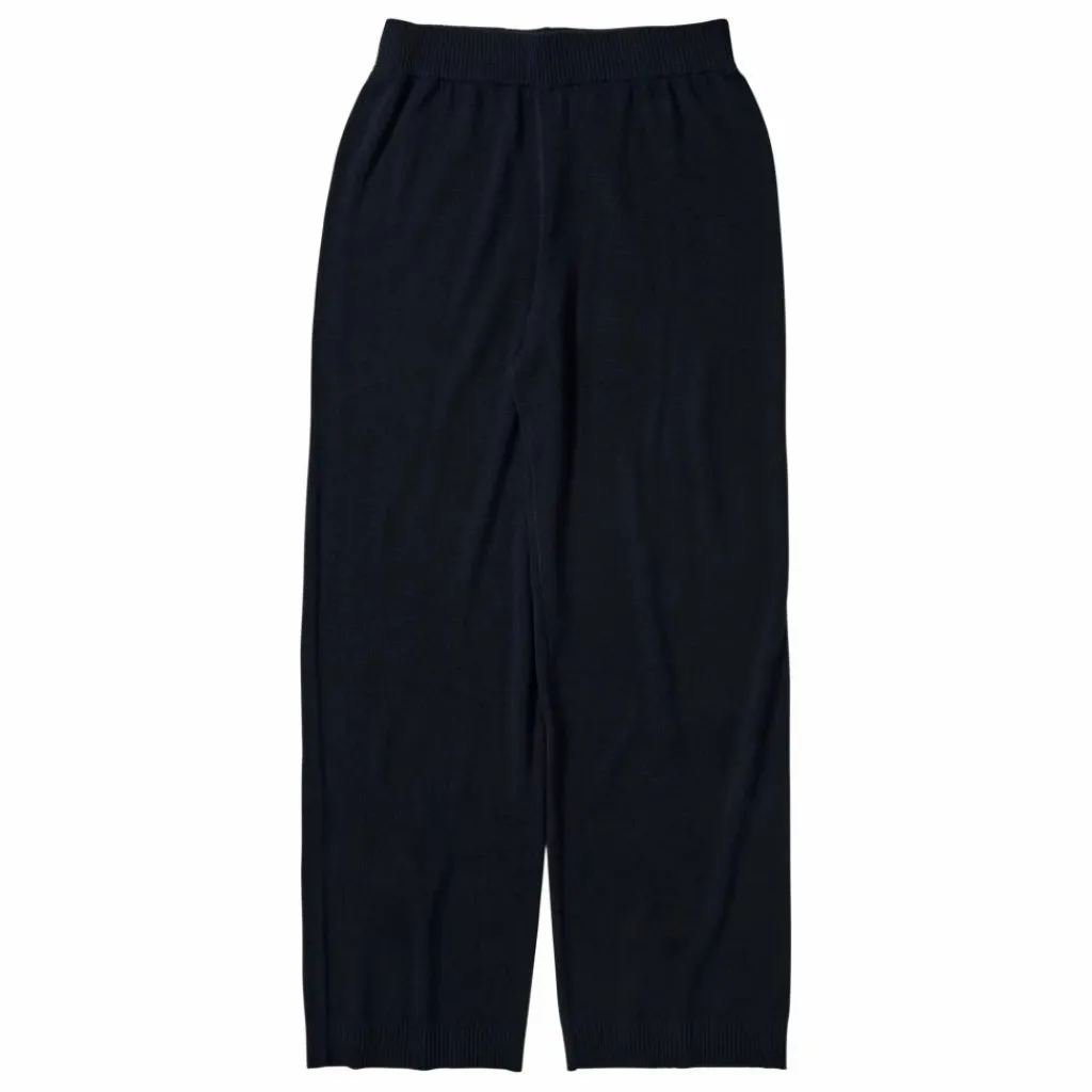 - Ce pantalon à la coupe décontractée, à l’entrejambe bas et aux jambes larges et droites, est doté d’une large ceinture élastiquée qui assure un ajustement confortable et de bordures côtelées à la base du pantalon. Il est fabriqué en pure laine mérinos et tricoté selon une structure de côtes mélangées fermes. Notre laine provient de moutons non mulets et est exempte de produits chimiques nocifs.