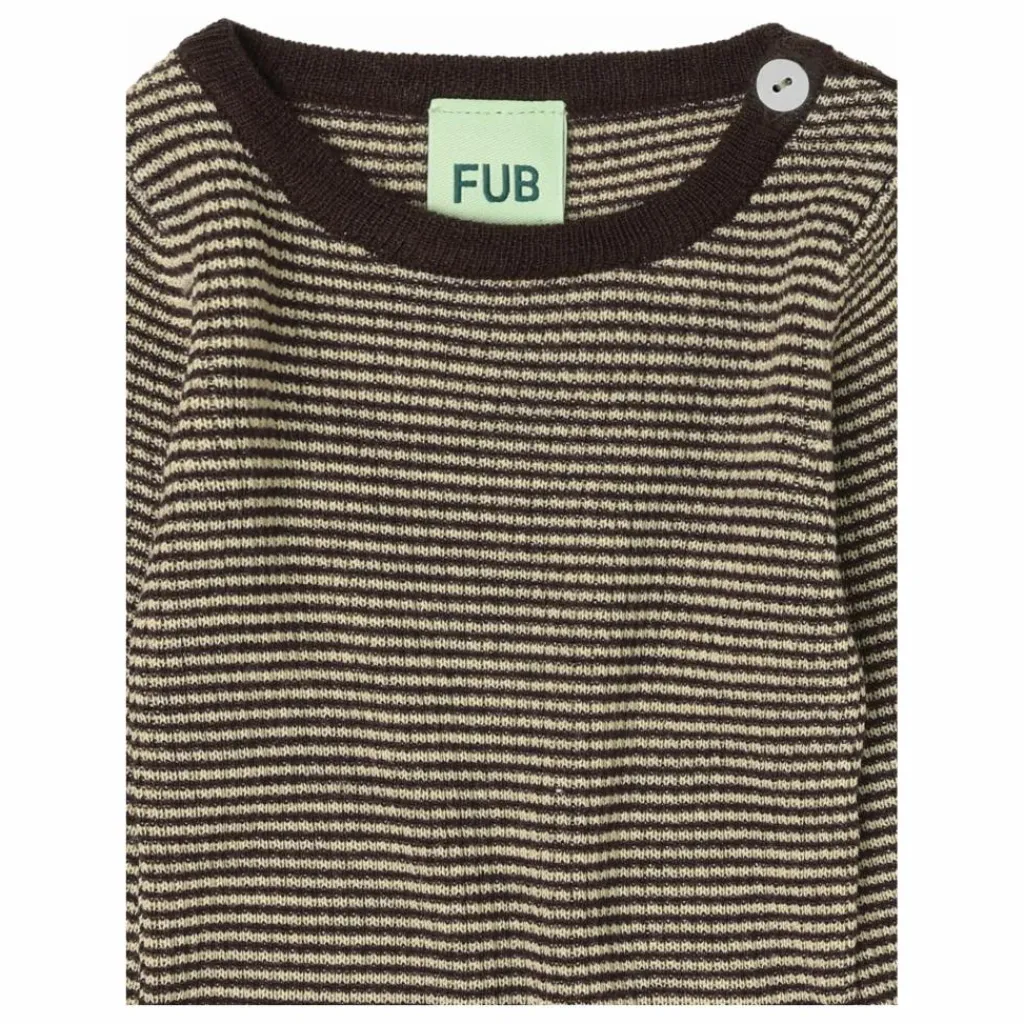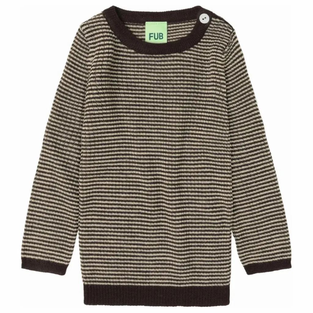 - Tricoté dans une structure en côtes rayées classique, ce pull pour bébé à manches longues est un classique de FUB. Il est doté d’une fermeture pratique à l’épaule avec des boutons en nacre perlée. Le pull a une coupe droite et étroite et est agrémenté d’ourlets côtelés étroits. Fabriqué en laine mérinos extra fine. Notre laine mérinos est certifiée BLUESIGN® et RWS, exempte de produits chimiques nocifs, et provient de moutons non mulets.