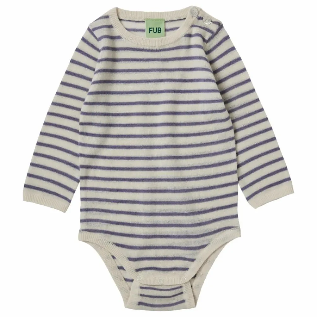- Tricoté dans un single jersey léger, ce baby body est un classique de FUB. Il présente des rayures classiques, des manches longues, une encolure ronde et des ourlets côtelés. Le body est doté d’une fermeture pratique à l’épaule, de boutons en nacre et de boutons-pression à l’entrejambe. Le body est fabriqué en laine mérinos extra-fine. Notre laine mérinos est certifiée BLUESIGN et RWS, elle est exempte de produits chimiques nocifs et provient de moutons non mulets.