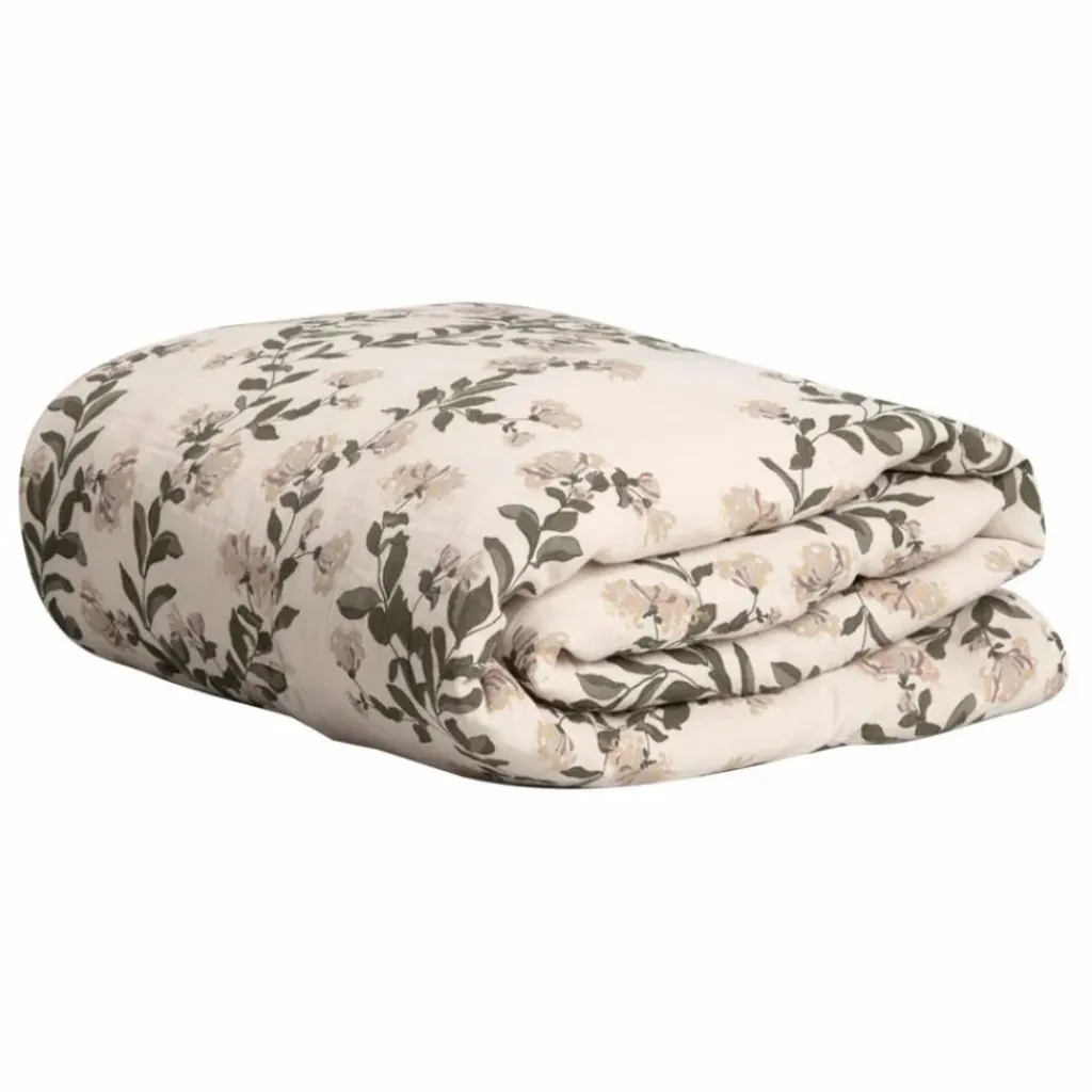 - Cette couverture aux imprimés floraux délicats a été fabriquée en mousseline de coton légère et aérée et peut être utilisée comme tapis de jeu, couverture de lit ou couverture pour se blottir dans le canapé.