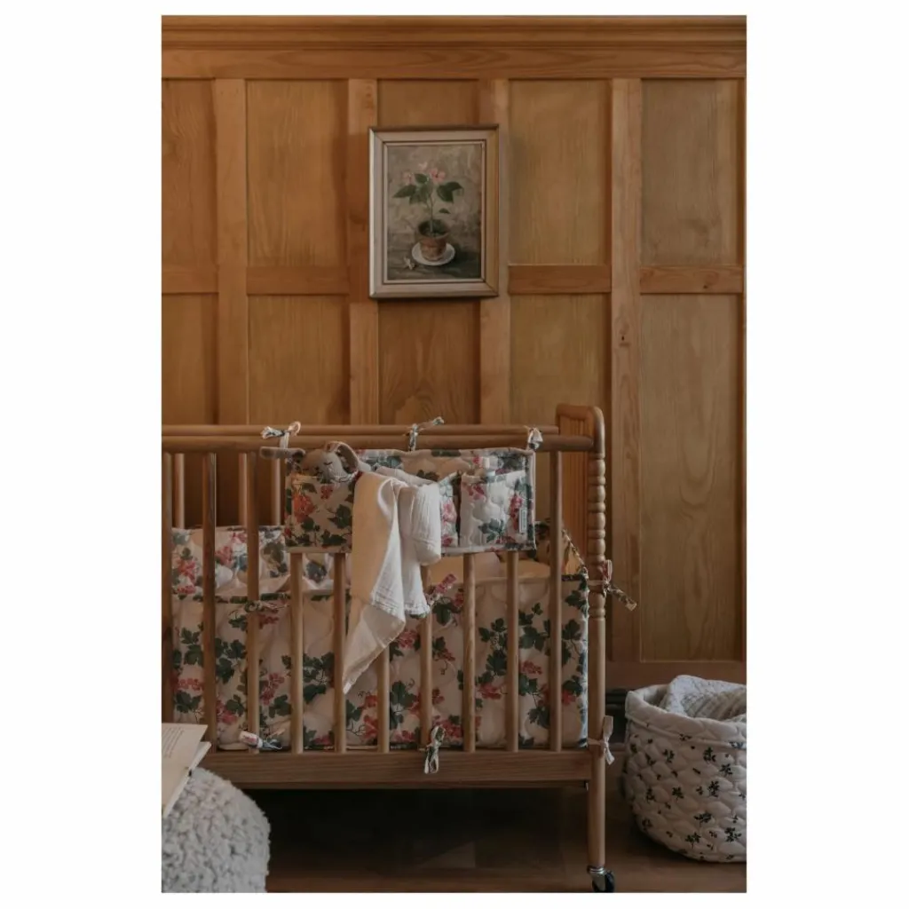 - Pochette matelassée à trois compartiments en satin de coton biologique. Parfaite pour être accrochée sur le côté du lit de bébé afin que les petits objets tels que les tétines, les hochets et les bavoirs soient toujours à portée de main. Fabriquée de manière éthique en Inde en coton 100 % biologique et certifié OEKO-TEX® 100.